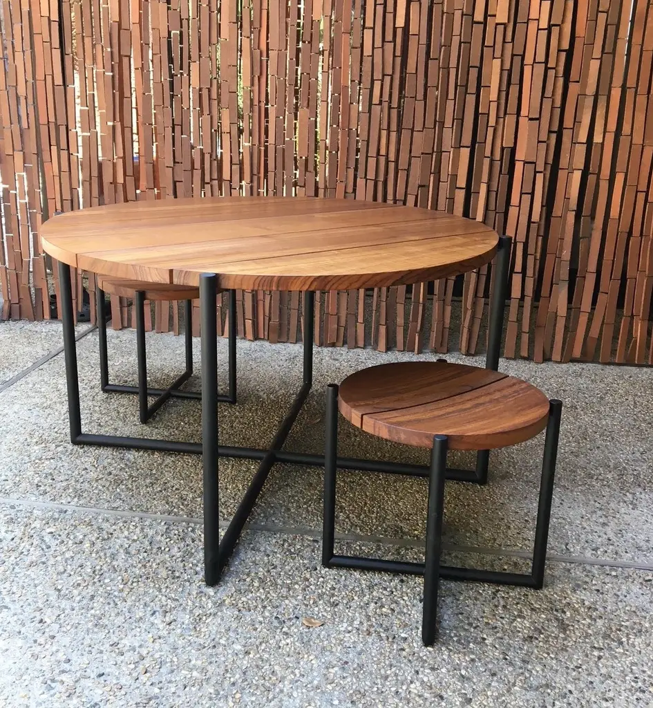Ten10 Madeira Round Dining Table Solid Plank Teak Top Stainless Steel Base 46"d