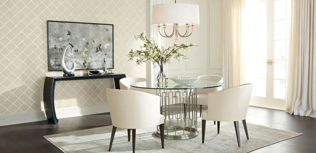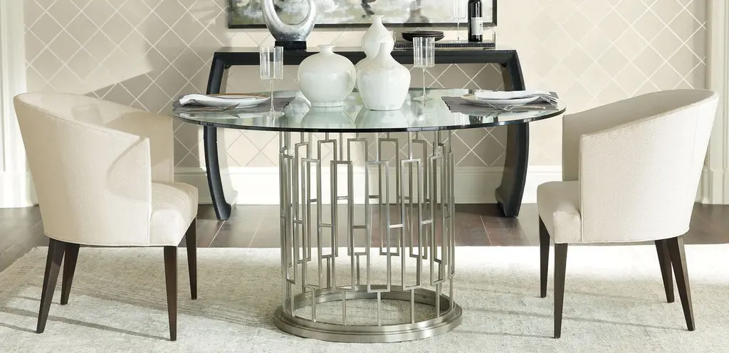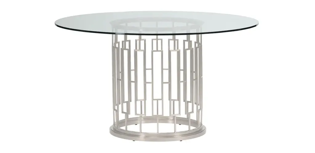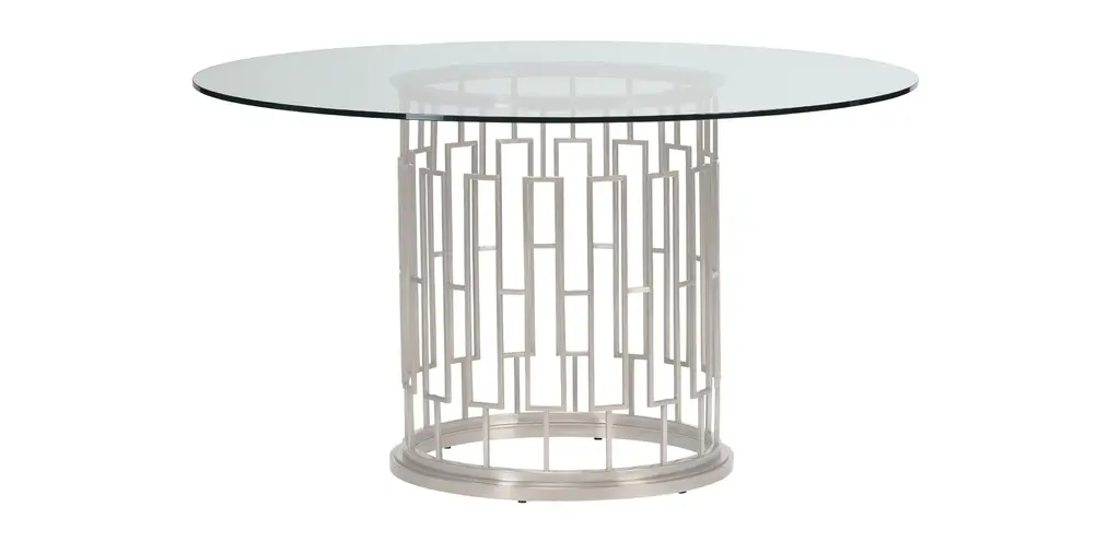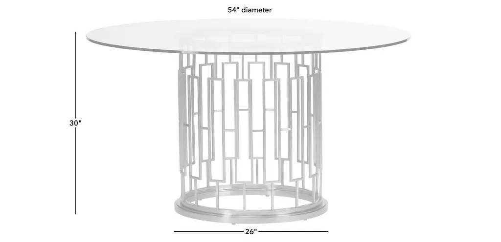 Make your dinner parties the talk of the town with Teresa, a stunning, Hollywood Regency-inspired glass-top dining table. Its round profile fits easily into a variety of spaces and facilitates great repartee—and the fretwork base is simply to dine for.
