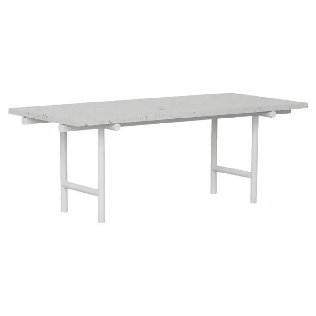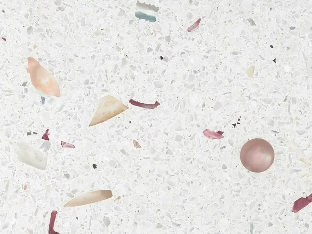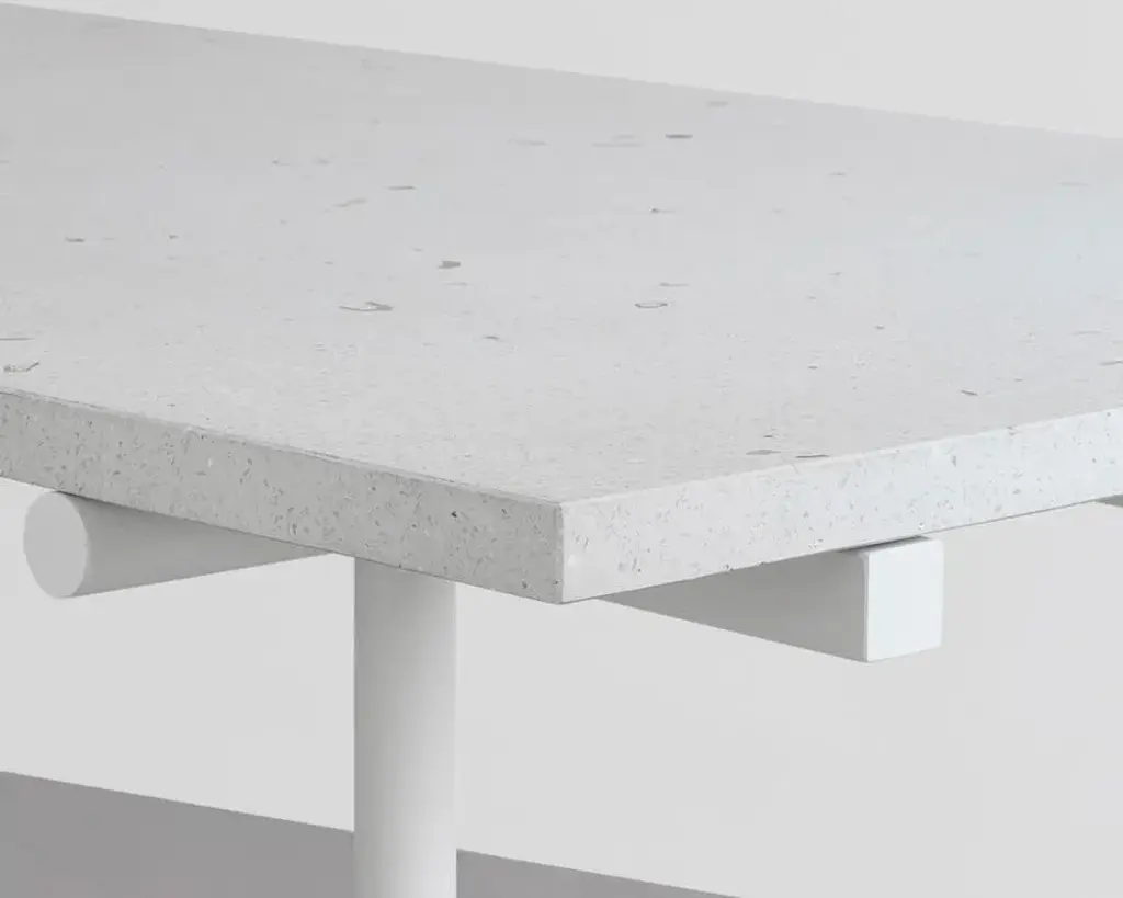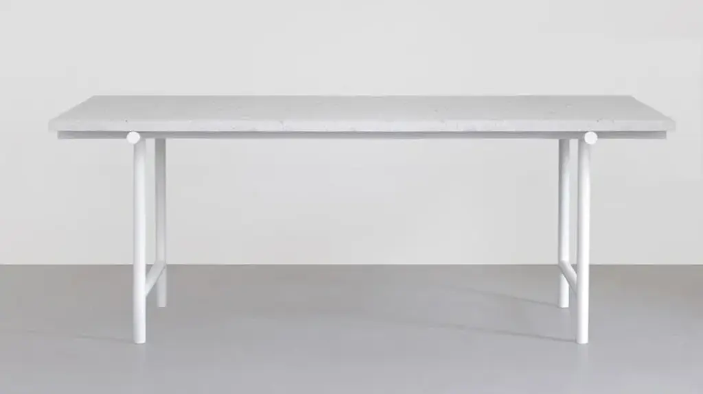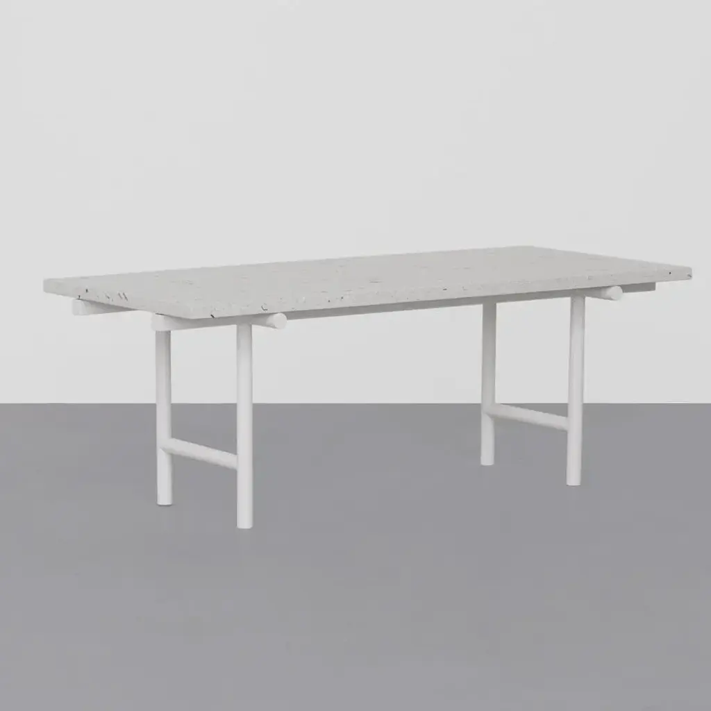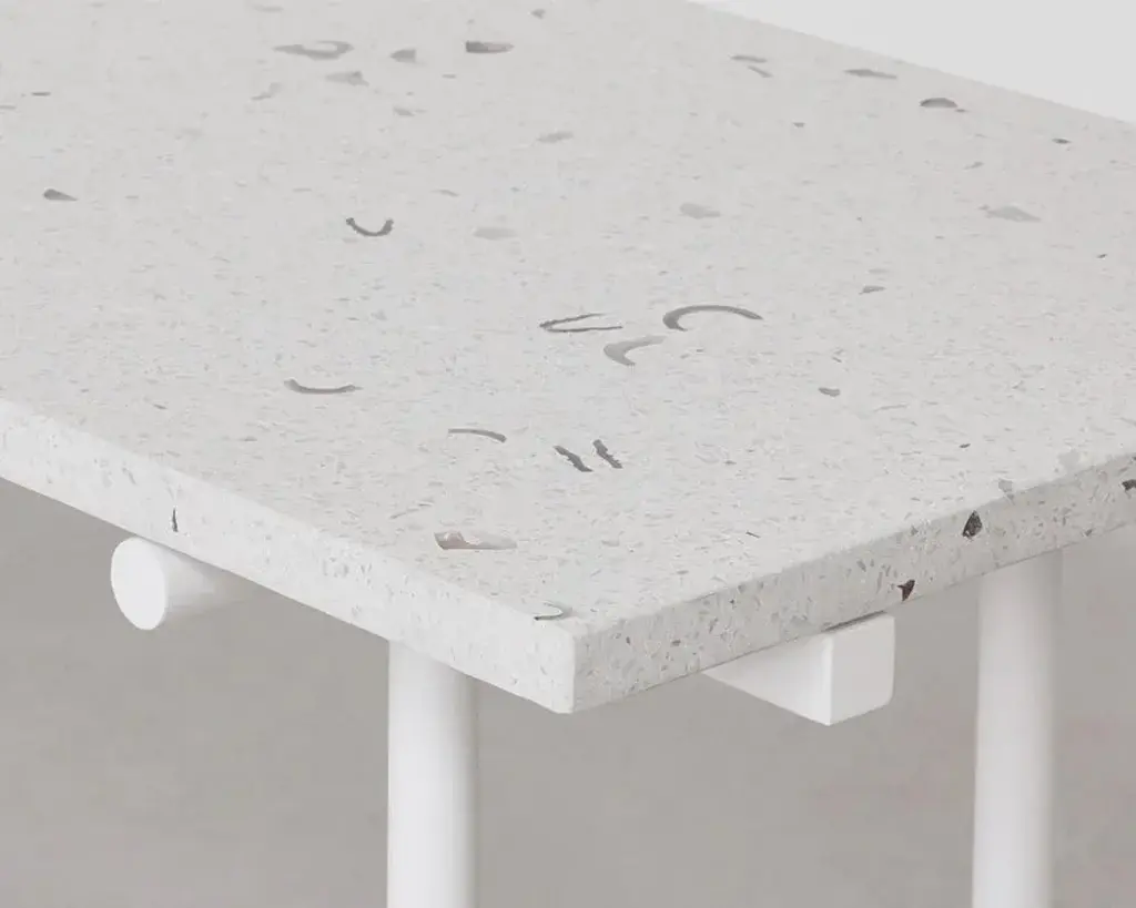 Terrazo bobby table by llot llov dimensions: w 100 x d 40 x h 32 cm materials: nail polish terrazzo the dining table bob’s table top is made of glacier nail-polish terrazzo, the table base structure consists of a powder-coated steel frame. The idea behind the design concept is that the table base exhibits the material.