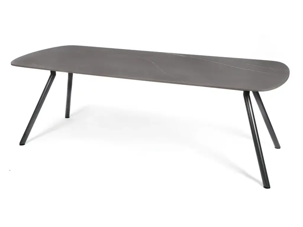 The Teso table meets the trend of today. The best materials, optical lightness and universally applicable, this is how the Teso table introduces itself. The Teso table offers a lot of legroom and a particularly high level of stability that has already convinced many customers. In addition to the square table and the rectangular sizes, the range is rounded off with the slightly oval table tops with the 12 mm ceramic and with fm-ceramtop in 6 mm with a surrounding frame. The frames of the tables with fm-lamiant and teak are offset inwards. The stable plates with fm-ceramtop in 12 mm and oval shape are placed on indented solid cross members.The Teso Collection stands for light and airy design. Its technically perfect tables provide plenty of legroom. The amount of available space under the tabletop invites to stretch out and creates the setting for a comfortable leisurly get-together. The Teso table sets new standards in design and material selection, which offers maximum durability and stability. It is available in three colours and invites you combine creatively to one's personal taste. The table frame is made of stainless steel powder coated in elegant anthracite or white. The resistant powder coating offers a fine structure in every design. With various sizes, the tables are recommended for various applications. With the Teso armchair slim, solid stainless steel tubes hold the tightly tensioned fm-soft rope in a tight covering. The wide, soft ribbons are masterly hand-braided and thus give the chair a very special, individual character and the best seating comfort. Two attractive color schemes adapt to the exterior in a stylish way. Of course, the armchair with the elegant fabric straps is weatherproof. The armchairs are optionally available with a comfortable cushion with a matching coloured outdoor fabric.