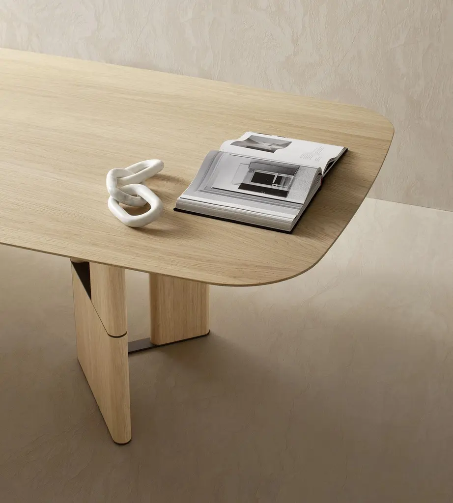 Tetris Oak Dining Table, 10 Seats, by Morica DesignDimensions: D 120 x W 300 x H 75 cm.Materials: Natural oak, dark burnished metal.Available in 6, 8, or 10 seats.Available in Canaletto Walnut, Laguna Oak, and Natural Oak. Please contact us.Table with legs in curved MDF veneered with real wood or lacquered MDF, with metal inserts painted with epoxy powders.Adjustable table feet on the floor. Shaped top in 40mm real wood veneered and brushed MDF with 30° beveled edge, hand-edged and finished with natural paints.The spark of an idea began with three brothers, Moreno, Riccardo, and Carlo, and the desire to provide genuine Made in Italy design furniture, delivered to customer homes directly from the factory.We guarantee our customers a controlled, certified supply chain and an excellent service that makes it easy for their items to be delivered to directly their homes.We are a fresh organization, full of ideas with the desire to make the world a better place, to change the way we consume by providing beauty, sustainability,y and reliable service!