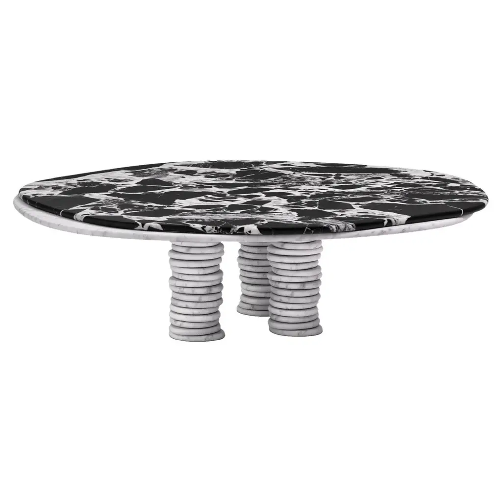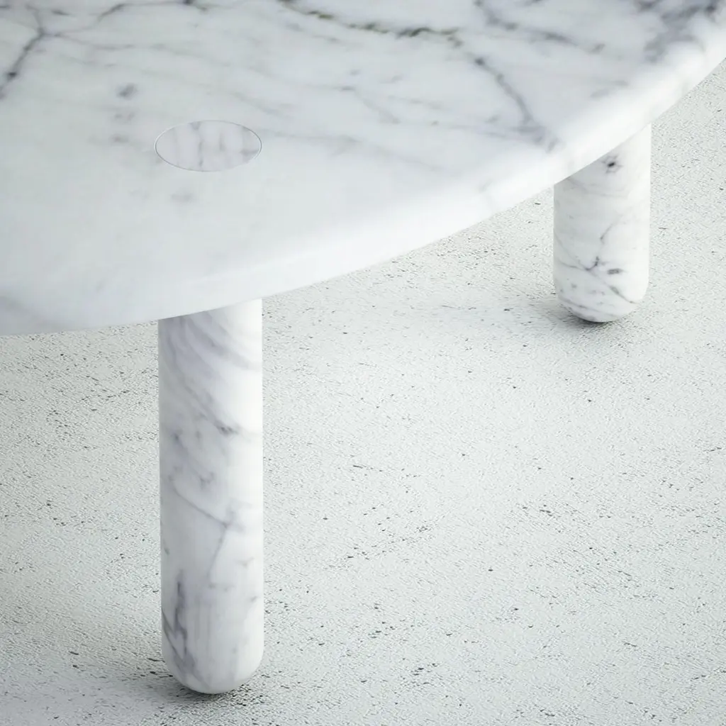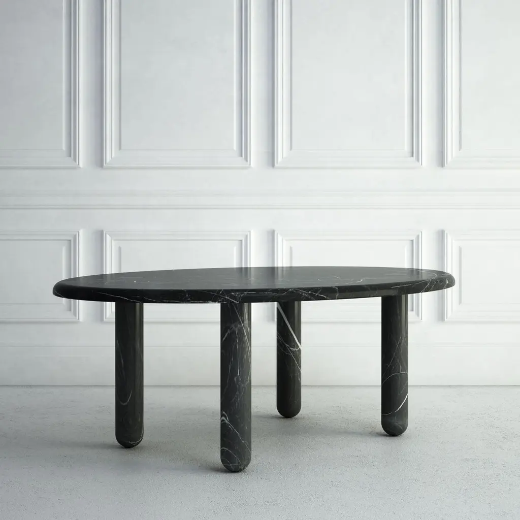 The Delphine: A Modern Stone Dining Table With An Oval Top And 4 Rounded Legs