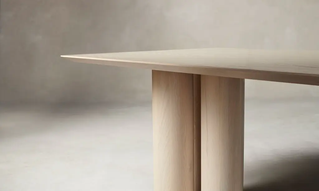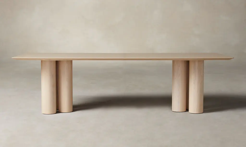 In the Reade Dining Table, strong and sculptural forms collide. The design features a rectangular tabletop and columnar legs, each shaped from solid ash by Amish artisans. Handcrafted in Ohio.