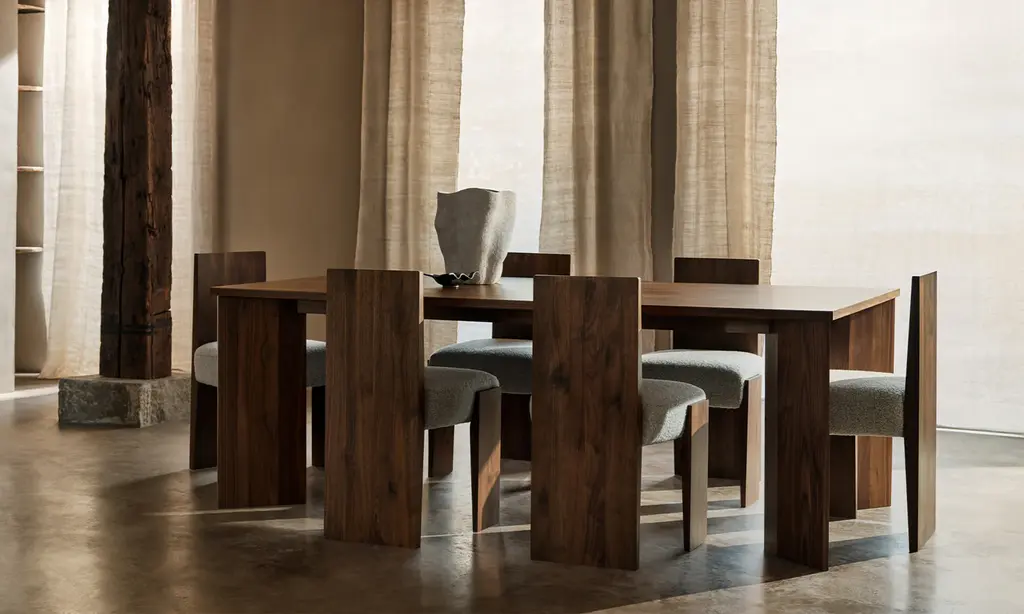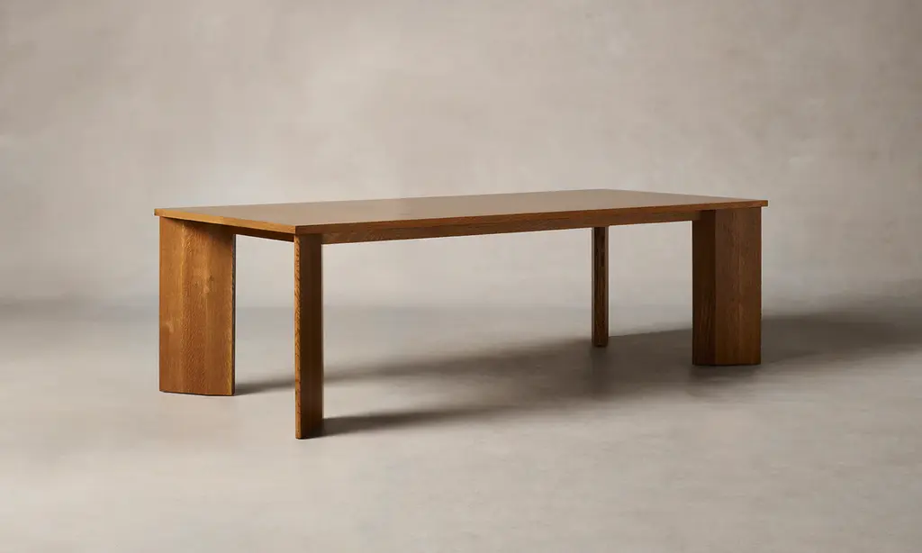 The York Table makes a profound impact in the dining room. Its expansive tabletop and striking legs—each beveled and positioned at an angle—attract the eye, making it an alluring piece to gather around. Handcrafted at a family-owned workroom in upstate New York.