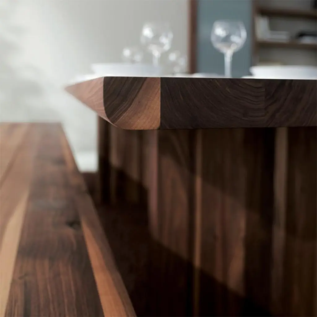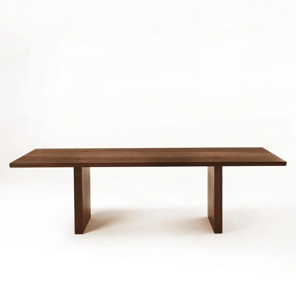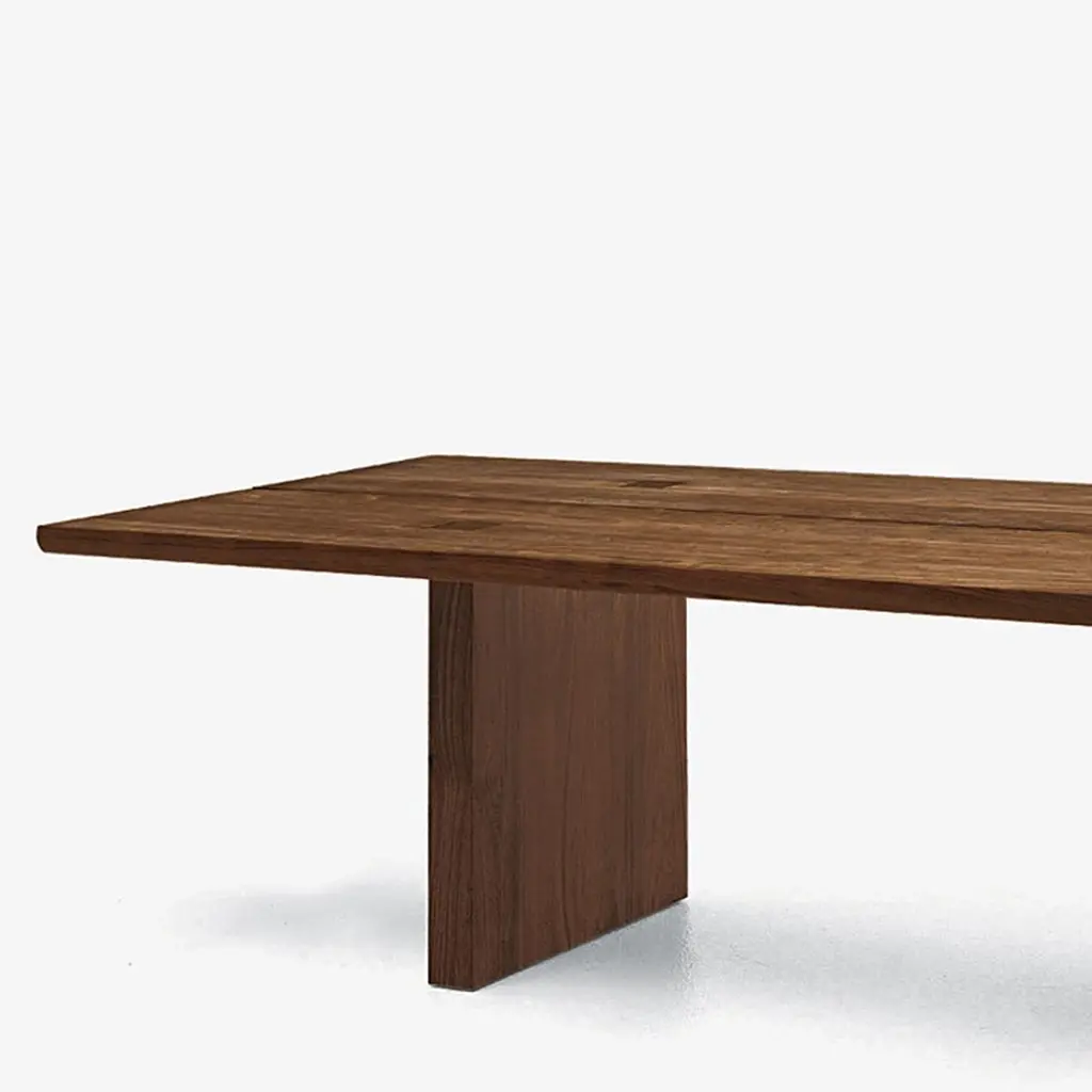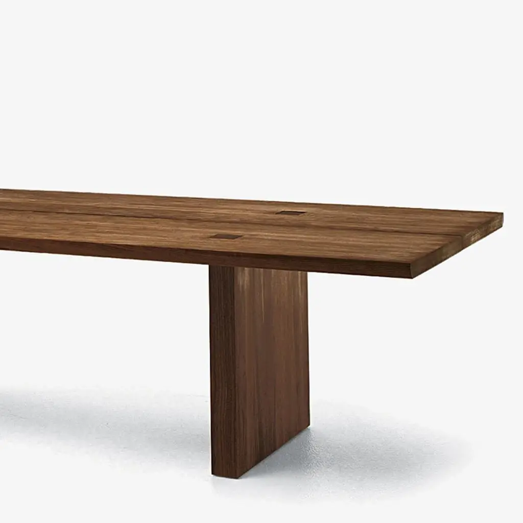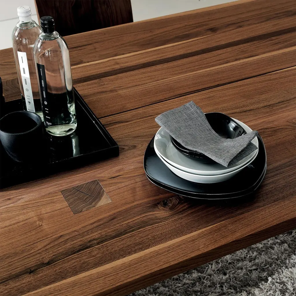 Dining table Theos in solid walnut wood, with a gap in themiddle of the top, with visible squares feet's fixationson the top. With rounded edges.Also available in solid oak, on request.Available in:L180xD100xH75cm, price: 9500,00€L200xD100xH75cm, price: 9900,00€L220xD100xH75cm, price: 10500,00€L240xD100xH75cm, price: 10900,00€L260xD100xH75cm, price: 11900,00€L280xD100xH75cm, price: 12500,00€L300xD100xH75cm, price: 13900,00€.