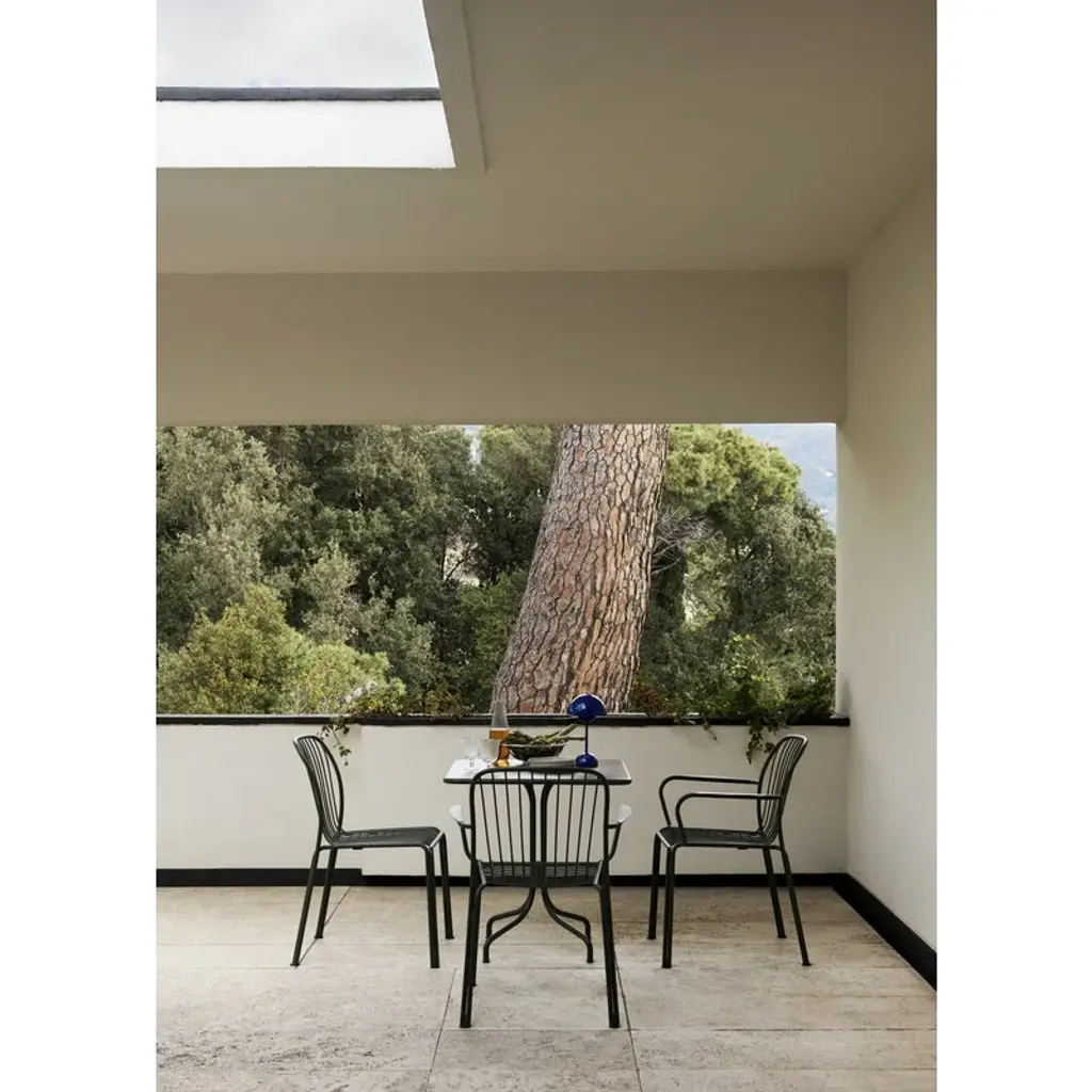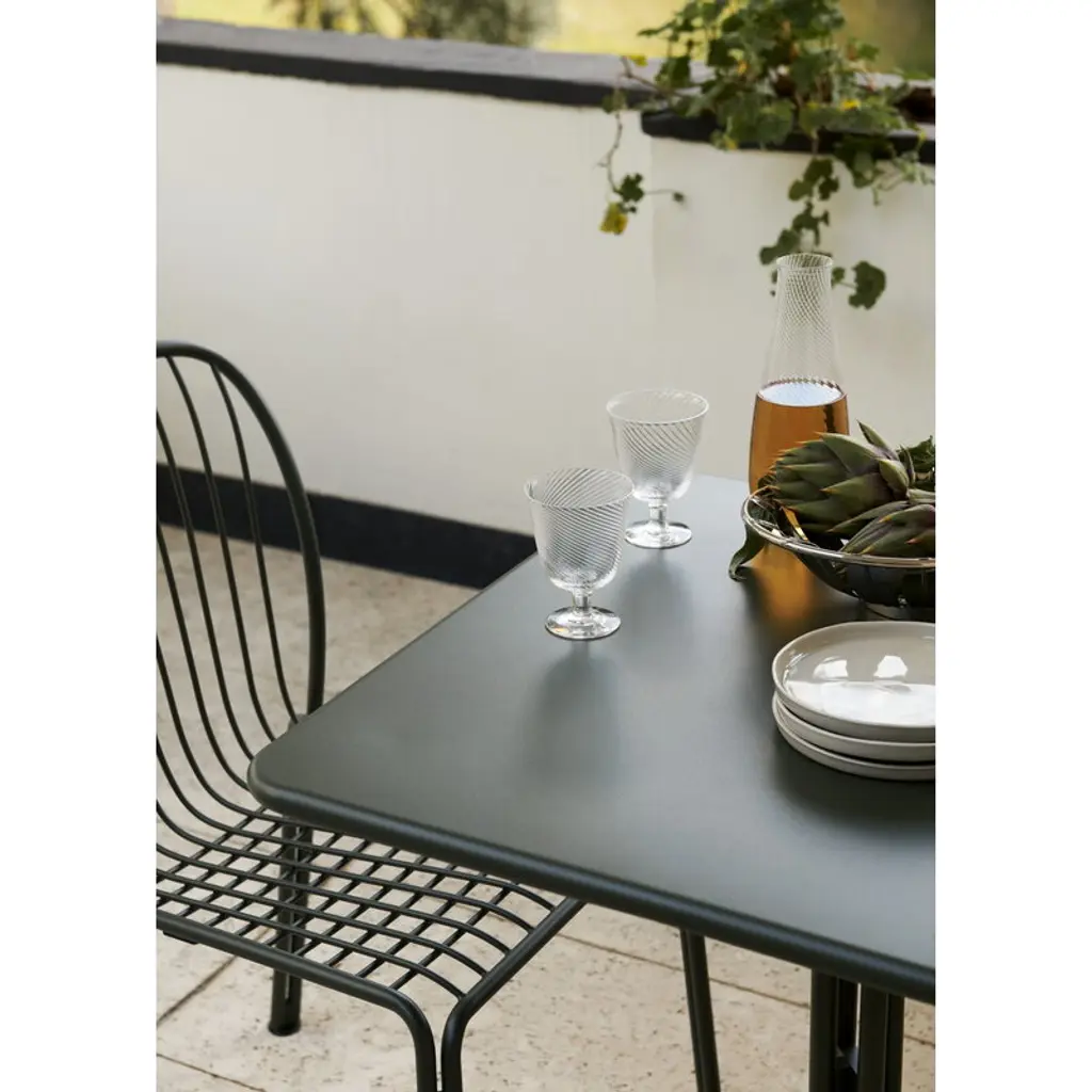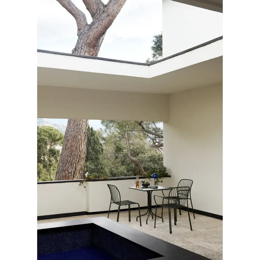 &Tradition's Thorvald SC97 is an outdoor café table featuring a steel frame and square-shaped tabletop that provides a compact setting for open-air dining. The Thorvald SC97 patio tables blend seamlessly with dining chairs from the same collection and also pair beautifully with other styles of outdoor furniture, making them a versatile addition to any al fresco dining area. Designed by Space Copenhagen, the Thorvald collection offers a diverse suite of metal patio furniture, echoing the vibrant essence of Copenhagen and playing with sunlight to cast intriguing shadows on the ground. Inspired by the poetic lines of Denmark's renowned neoclassical sculptor, Bertel Thorvaldsen, and the intricate motifs in his namesake museum, the Thorvald series is designed to animate any outdoor space, from chic urban terraces and snug balconies to spacious summer retreats, in both private and public settings.