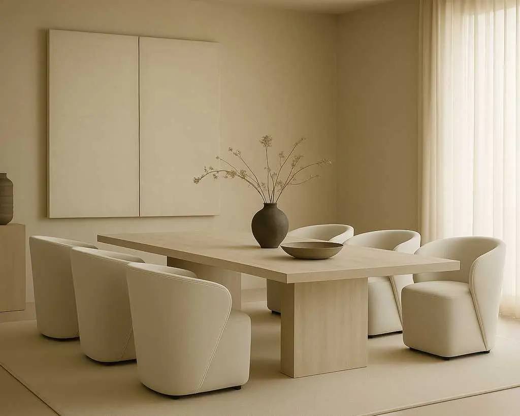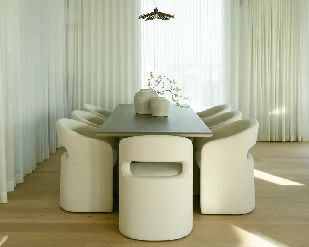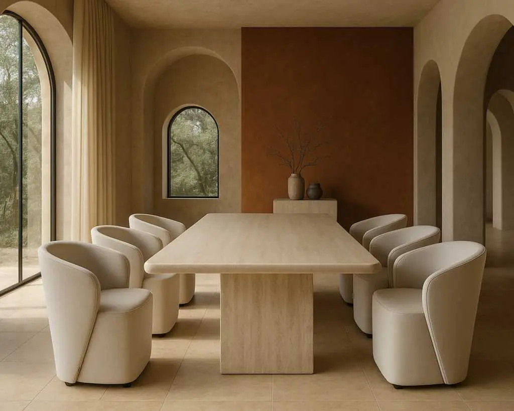 Indulge in the exquisite elegance of the Tiberius Dining Table. Borrowing elements from Roman architecture, the grand, monumental silhouette of the Tiberius is meticulously crafted to evoke a sense of timeless elegance. This statement piece is available in two distinct finishes, each with its own unique allure. Choose the sophisticated white travertine in a refined 82" size, or opt for the grandeur of the 95" grey oak, crafted from 100% solid wood. Both sizes offer a striking dining experience and serve as stunning centerpieces for any dining space.