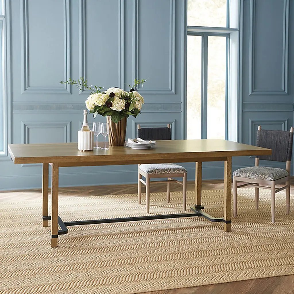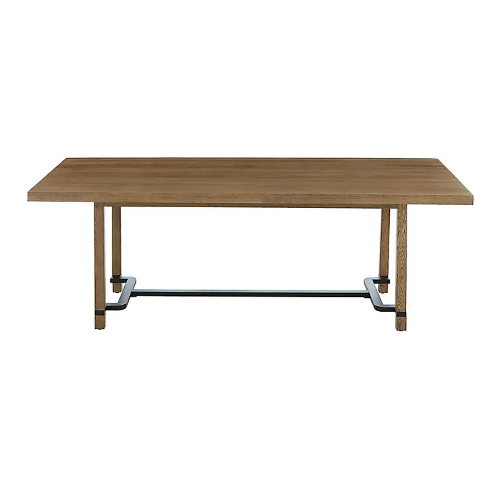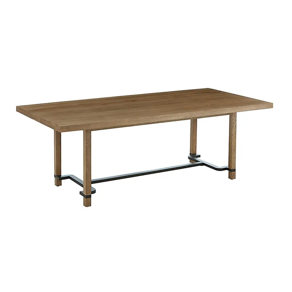 Big family meals are back on the menu. Our Tiburon Dining Table is brimming with warmth, texture, and natural beauty. Hand built by master craftsmen, the classic rectangular silhouette features a sweeping, 2-inch-thick top hand finished in warm brown stain to bring out the wood's organic lines and rich grain. Crisply squared legs are joined by a matte black "I" stretcher so skillfully imbedded, it looks as though the wood has grown around it. Tiburon Dining Table features: