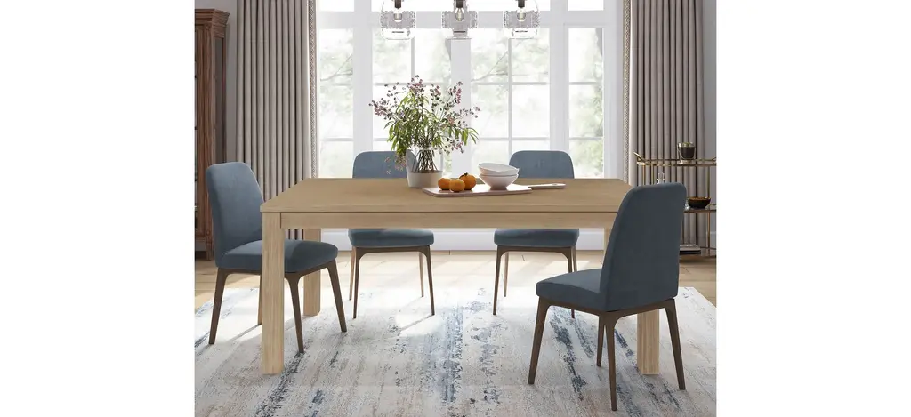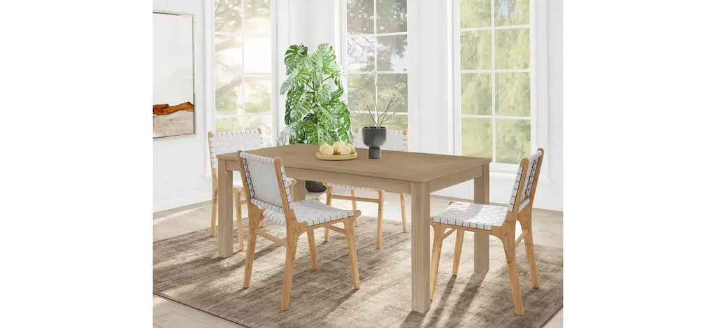 Modern Rustic dining table ideal for a family of four - The Tiburon Dining Table is refreshed in a light wood tone that strikes a balance between cozy simplicity and Japandi aesthetics. Designed to work with modern to transitional decor, and some are using it as a working desk!