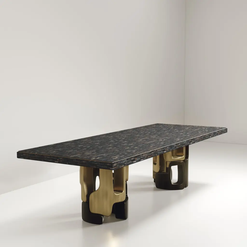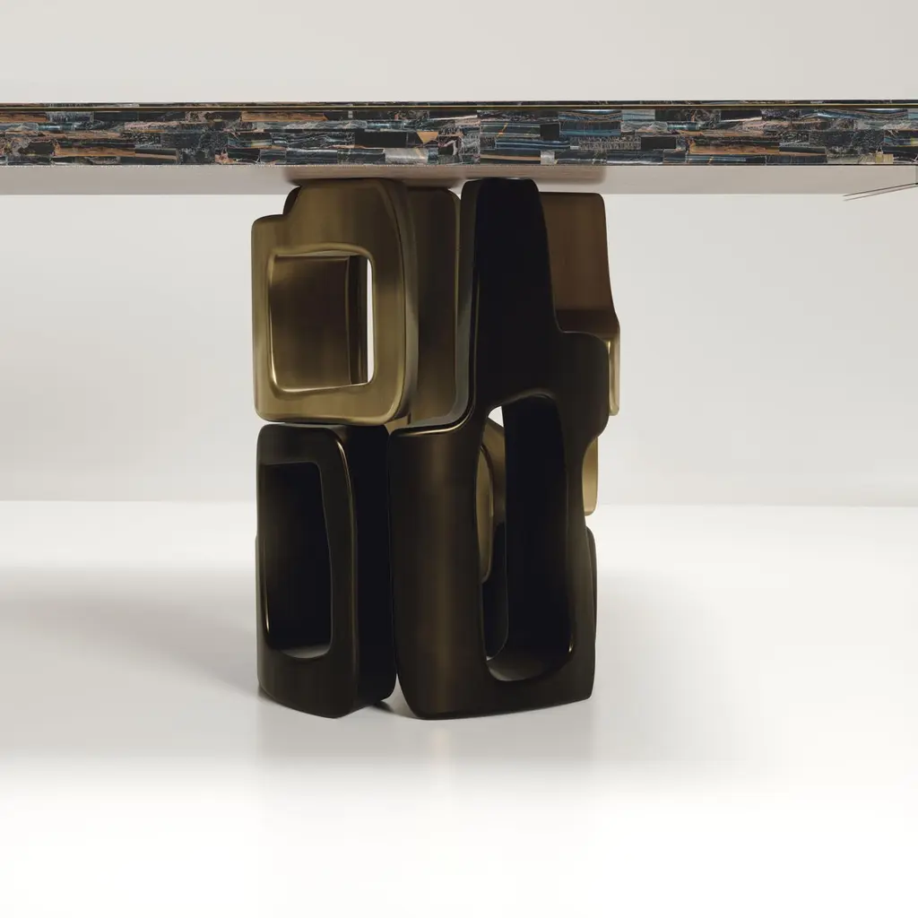 Tiger Eye Dining Table With Bronze Patina Brass Details By Kifu Paris