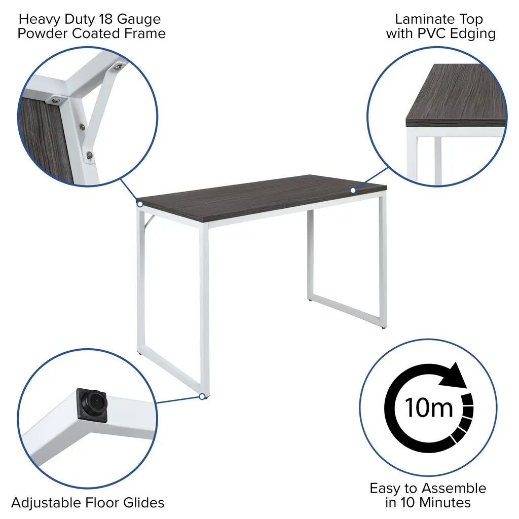 Whether you need a simple style computer desk to furnish your new office suite or are working from home this industrial style office desk offers plenty of tabletop workspace, clean lines, and an elegant modern look suitable for any professional or home decor. Dependable computer furniture is necessary to navigate your business and team members towards success. The ultra-strong 18 gauge metal frame is powder coated to resist damage and will support up to 250 lbs. of static weight. Adjustable floor glides to accommodate uneven flooring to give users a level work surface. No complicated setup gives you full use of your PC computer office table in about 10 minutes without breaking a sweat. Create an office, writing or study space in your loft, living room, or bedroom while maintaining an open concept. This open framed office table was built for commercial settings but is well-suited for home use. With its minimalistic style, you can effortlessly convert this work desk into your game table or dining table.
