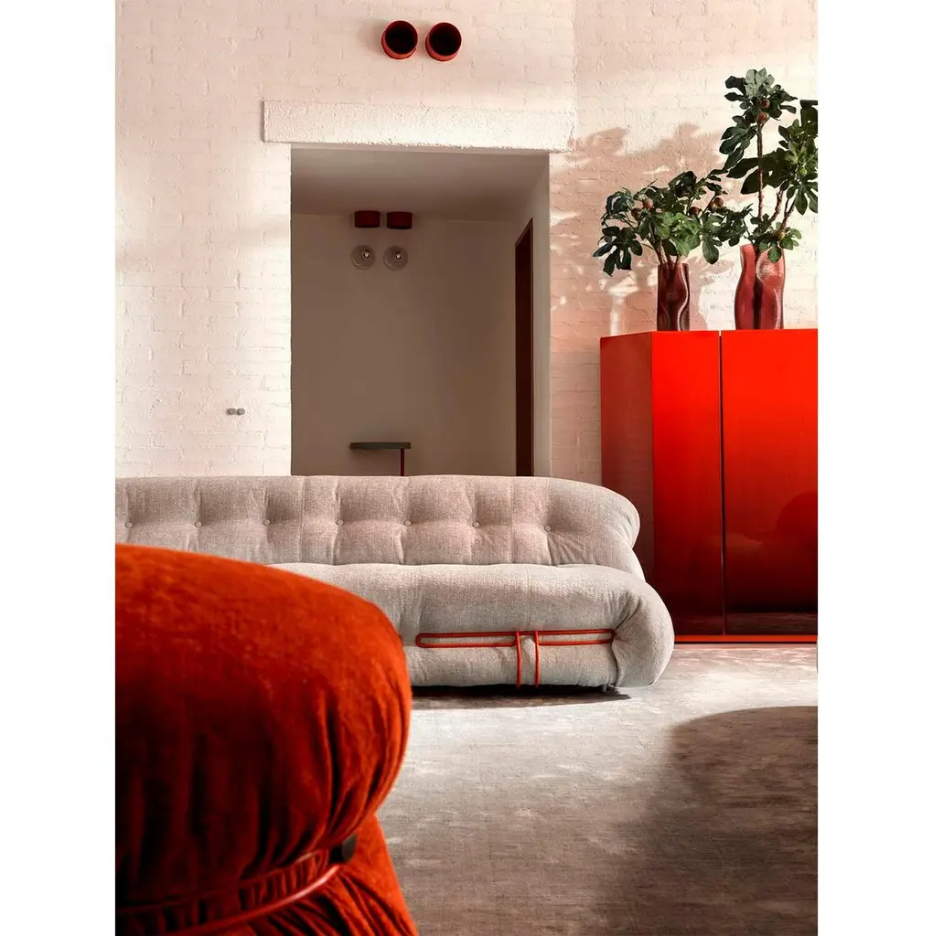 Three seater sofa model Soriana designed by Tobia Scarpa in 1969.Manufactured by Cassina in Italy.A design armchair with soft, generous contours, designed to bring home casual, sophisticated comfort that opens the door to new, freer lifestyles. The idea for this armchair that changed the face of upholstered furniture belongs to Afra and Tobia Scarpa, who designed it in 1969, starting with the new possibilities offered by the forming of polyurethane foam to create an unconventional look of leisure.With a vise-like grip, the metal structure holds the armchair, with its biodegradable internal padding that, for the first time ever, needs no internal support, intensifying the comfort level of this upholstered chair in the most freeing sense of the word. Materials:MetalFabricImportant information regarding images of products:Please note that some of the images show other colors and variations of the model, these images are only to present interior design proposals. The item that is selling is on the first image. Important information regarding color(s) of products:Actual colors may vary. This is due to the fact that every computer monitor, laptop, tablet and phone screen has a different capability to display colors and that everyone sees these colors differently. We try to edit our photos to show all of our products as life-like as possible, but please understand the actual color may vary slightly from your monitorAbout the designer:Architect and designer Tobia Scarpa graduated in 1969 at the University of Venice and in the same year won a “Compasso d’Oro” prize for his “Soriana” armchair designed for Cassina. He has since been awarded many other design prizes and many of his designs can also be found on show in some of the world’s key museums, including his ‘Libertà’ chair on show at the Louvre. As an architect he has worked for both public and private clients including the Benetton Group for whom he famously designed the industrial area and production plants in Castrette di Villorba (Treviso). Even today, the Benetton facilities are still held up as an example of aesthetic-functional excellence, one of the world’s most exciting pieces of industrial architecture.About the manufacturer:In a continuing dialogue between past, present, and future, Cassina has created the I Maestri collection, revisiting furnishing designs by the 20th century’s best-known architects, including Le Corbusier, Pierre Jeanneret, Charlotte Perriand, Charles Rennie Mackintosh, Gerrit Thomas Rietveld, Franco Albini, Frank Lloyd Wright and Marco Zanuso. While the designs and functional concepts have been precisely preserved, the models have been manufactured using evolved technology. This is also the company that has manufactured iconic pieces of contemporary design from the 1950s to the present day, ideated by some of the most important international designers. Today Cassina continues to look to the future of design with audacious, passionate curiosity and an open, holistic approach. It affirms its exclusive ability to furnish a home’s living and dining spaces completely and iconically with The Cassina Perspective: a concept, a philosophy, an informed, futuristic thought. A detailed, expansive horizon of combinations; when placed together, the products have an innovative soul and the modern icons create authentic, welcoming, personal atmospheres involved in a conversation dominated by a code of design excellence, formal sensitive awareness, solidity and cultural authority.