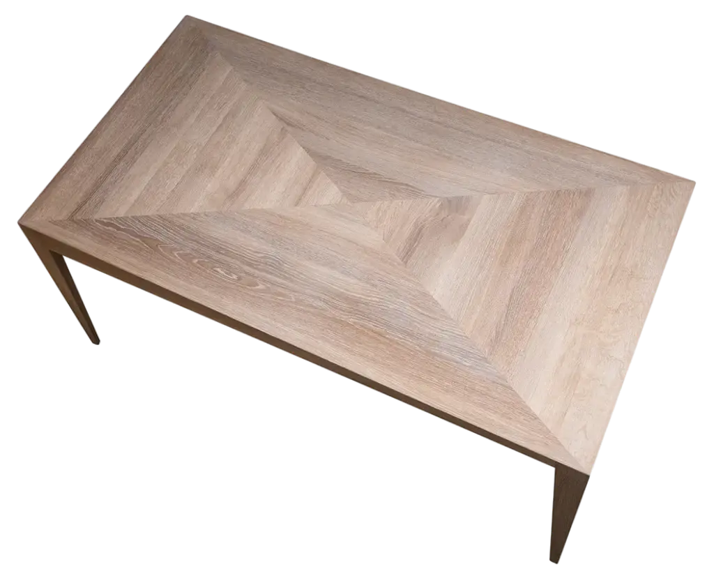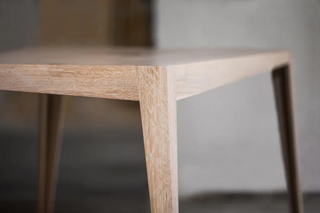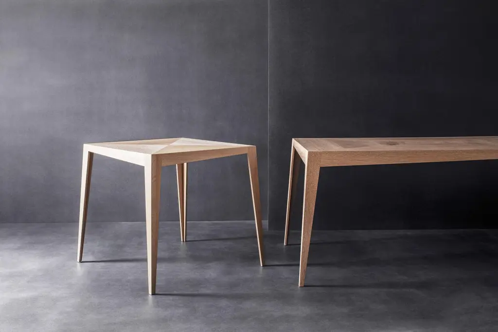 Tocker table by Matthias Scherzinger.Dimensions: 75 x 75 x 75 cm.Materials: oak: white lyed, oil.Other sizes and types of wood.The Tocker is a lightweight solid wood table suitable for dining or meeting rooms. The seamless transition from the table top to the base presents a compact unit, whereas the conically structured legs highlight its elegant form.The table top is divided into four sections to emphasise its character while uniting classical elements with modern design. The complex construction form ensures a substantial stability despite the application of minimal material thickness.Tocker has a confident touch of class.It all began in Glottertal, Germany. Born in 1978, Matthias developed early on a deep connection to nature and culture during his childhood. This was supported by the family‘s farming business (field, forest, vineyard, grassland). So, his rootedness in tradition and home arose early. Then, the handling of wood was restricted to the maintenance and care of the family forest.During school, Matthias’ strengths soon became visible. These all happened to be of the artistic kind. Driven by his practical nature, he was destined to start working in skilled crafts and trades after graduation. So in 1999, he decided to start an apprenticeship as a joiner/cabinet maker. Following his first professional years, he felt like a change. Following his inner voice in search of development and self-fulfillment, he initiated a journey in search of his new self.In 2014 he returned to his origins and founded his own furniture label by the name of FREUDWERK - Design & Manufaktur.Initially, FREUDWERK was merely a design studio located in Glottertal, Germany. In the meantime, Matthias owns and operates his own factory in Reute, Germany, where he develops and crafts his creations in a very skilled, careful and elaborate way. Alongside his own collection, Matthias manufactures designs from individual customer specifications. FREUDWERK services deliver conceptualisation, prototyping and serial manufacturing, that is, a wholistic design from beginning to end.