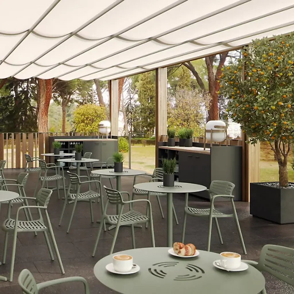 Introducing our Toledo Aire Round Dining Table by Resol, an embodiment of style and functionality. Designed for the modern home, this sleek and elegant piece is a perfect match for your dining room or any indoor space. Crafted from durable aluminum and HPL compact, the table's compact design ensures it takes minimal space while offering maximum utility. Ideal for a circular table setting, it comfortably seats two, making it a perfect addition to your intimate dinners. Its matte finish enhances its sophisticated appeal, making it an unquestionably stylish and functional furniture piece for your home.