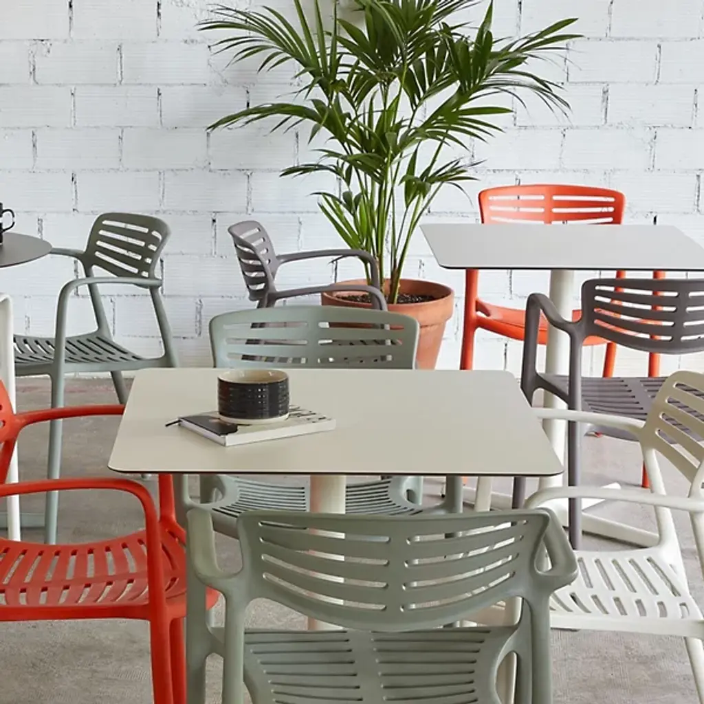 Welcome to Resol's modern Toledo Square Dining Table, where elegance meets functionality. This sleek piece is designed for the contemporary home, a perfect addition to any dining room with its compact design. Constructed with a sturdy base of aluminum and topped with a High Pressure Laminate (HPL) compact material, this table proves to be as durable as it is stylish. The functional furniture design provides adequate tabletop space, ideal for a square or circular table arrangement. Efficiently seats 2-4 people, making it an excellent space-saving solution for small to medium-sized living rooms.