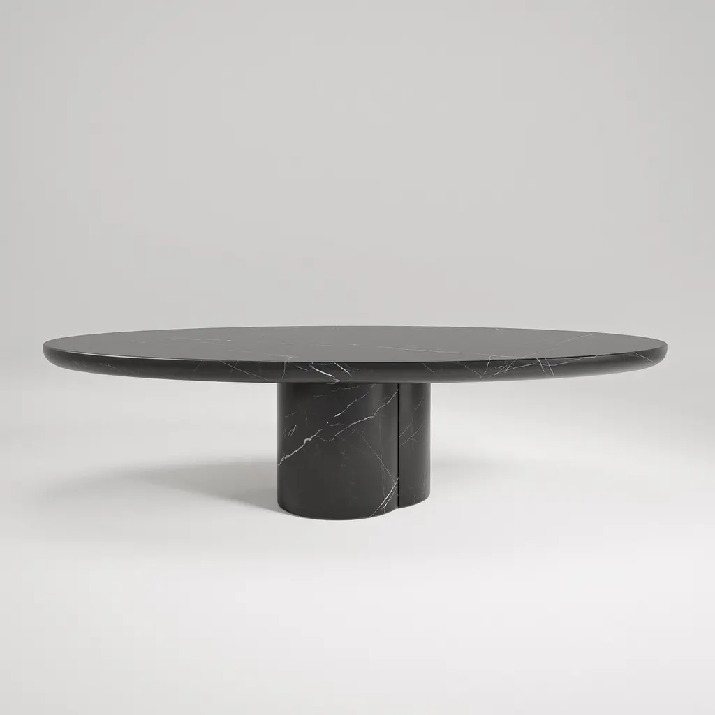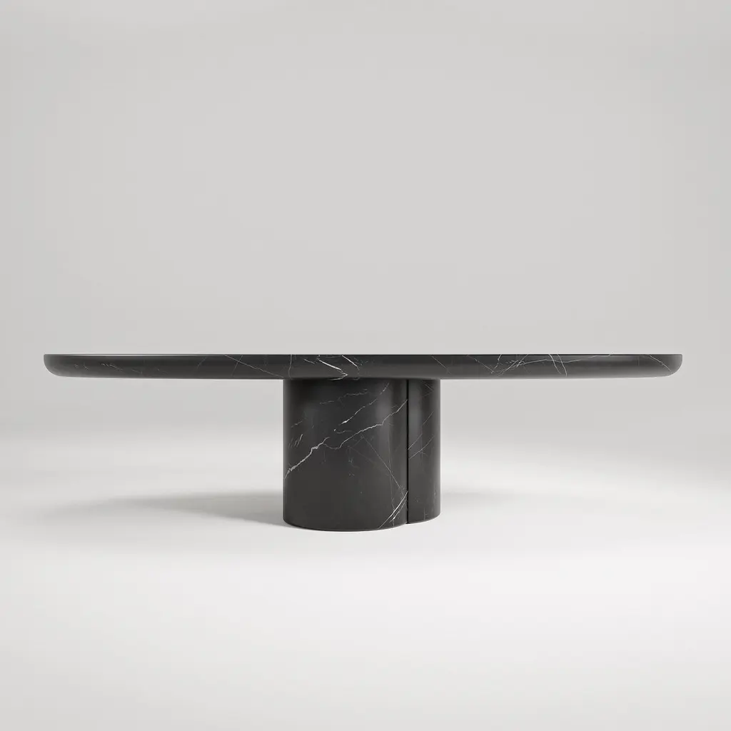 Tomoon Dining Table by Verena BrauschDimensions: D 130 x W 290 x H 75 cm.Materials: Marquina Unito marble.Verena Brausch brings new energy and singularity of purpose. Her primary motivation comes from her desire to create a better world for the next generation, a world in which environmental concerns are at the forefront of design work, balanced with purism, aesthetics, and excitement. This is the future she is determined to shape.Her love of ideas, her desire to challenge the status quo, her ambition of going new ways, her determination to use technological innovation to design new products, and her concern for environmental implications have accompanied one exciting creation after the other.Verena Brausch was born in Munich. After earning a degree from Munich Design University in Transportation Design, she worked in top design studios such as Adidas, BMW and Mercedes-Benz. She started her own brand VERENA BRAUSCH in 2022 in Paris.Her work spans a broad range of projects and scales, from interior design, architecture as well as industrial design and the development of unique furniture and lighting design. The perfect match between form, materials and colours is the driving force behind the conception of her projects. She is inspired by the interaction between these disciplines combined with a pure and exciting design attitude, constantly striving for perfection.With respect to context and tradition, she has worked on the highly acclaimed new luxury interior design of Mercedes-Benz cars, on iconic smart show cars and on the new Daimler corporate identity ‘Silver Look’. The scope of her projects is evidenced by her collaboration with well-known architects on lighting and furniture design for luxury apartments as well as fashion lines for high-end brands.She is proud of developing concepts to combine aesthetics and technological innovation with creative intelligence. She looks forward to uniting design skills with other industries’ insight to shape extraordinary designs.