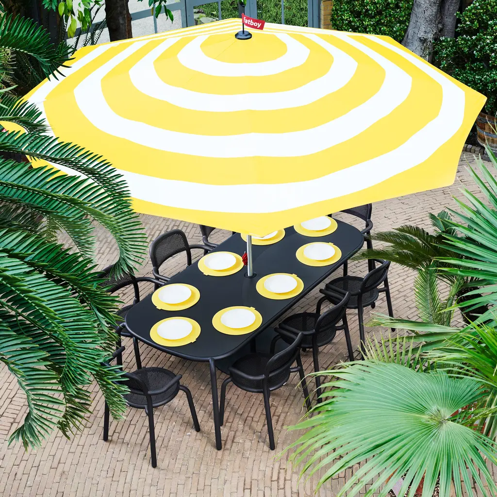 Suitable for use both indoors and out, the Toni Tablo Dining Table from Fatboy is crafted from weather-resistant aluminum, ready to stand up to the unexpected elements of the outdoors. Lightweight and adjustable, this table is easily moved about your space and can accommodate up to 8 people comfortably. Pair with the Toni Bankski Bench or any of your favorite seating designs for the perfectly equipped dining area.Highlights