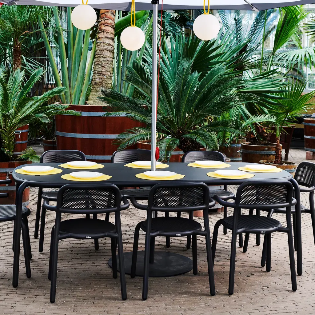 Suitable for use both indoors and out, the Toni Tablo Dining Table from Fatboy is crafted from weather-resistant aluminum, ready to stand up to the unexpected elements of the outdoors. Lightweight and adjustable, this table is easily moved about your space and can accommodate up to 8 people comfortably. Pair with the Toni Bankski Bench or any of your favorite seating designs for the perfectly equipped dining area.Highlights