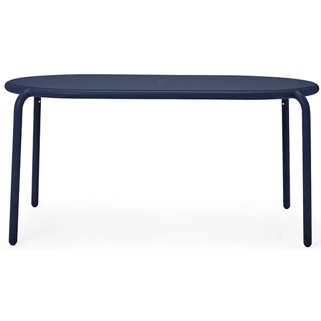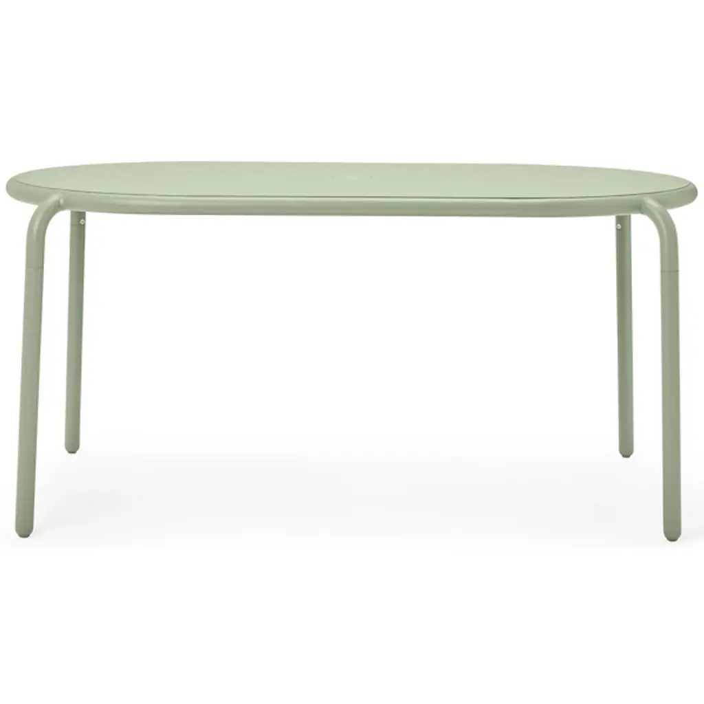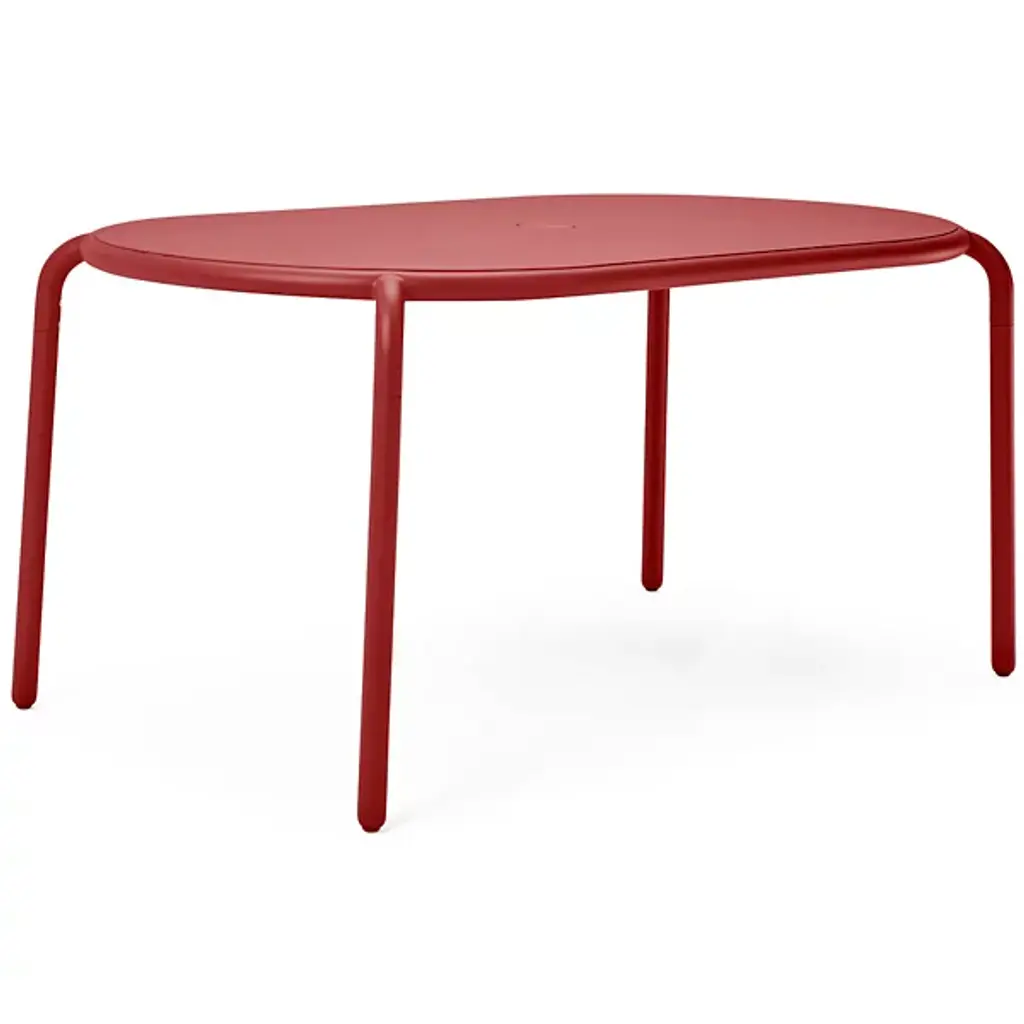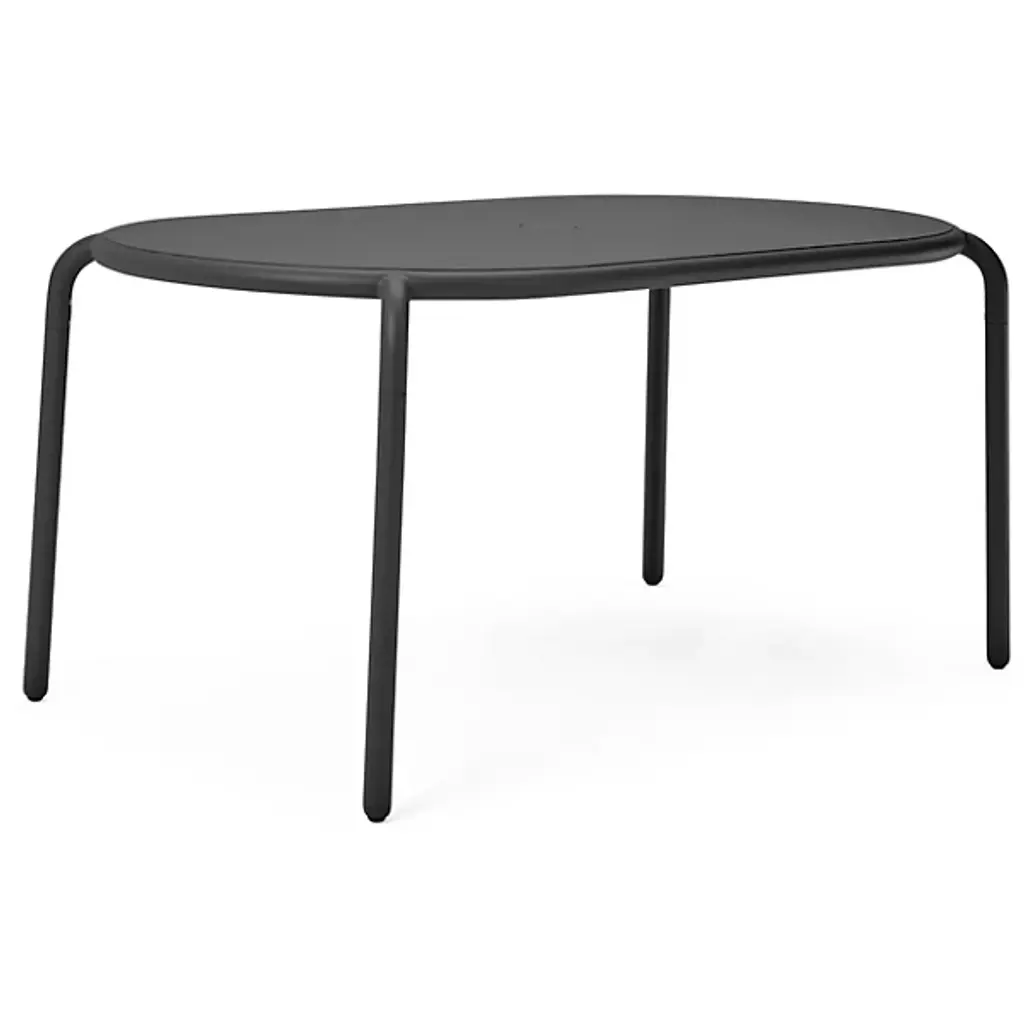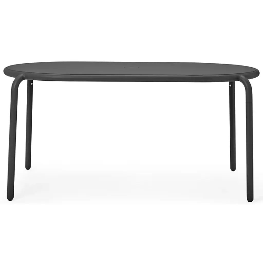 The Toni Tavolo Outdoor Dining Table by Fatboy brings a lasting and elegant character well-suited to backyards and other outdoor gathering spaces. A smooth oval design that seats six, it’s balanced on four adjustable legs and fashioned from aluminum, which lends both structural strength and an easy-to-move lightness. The tabletop is flat and matte-textured for rust resistance, featuring a central parasol opening that breaks up its solid surface to add another welcome touch of functionality to its softly-curved construction.