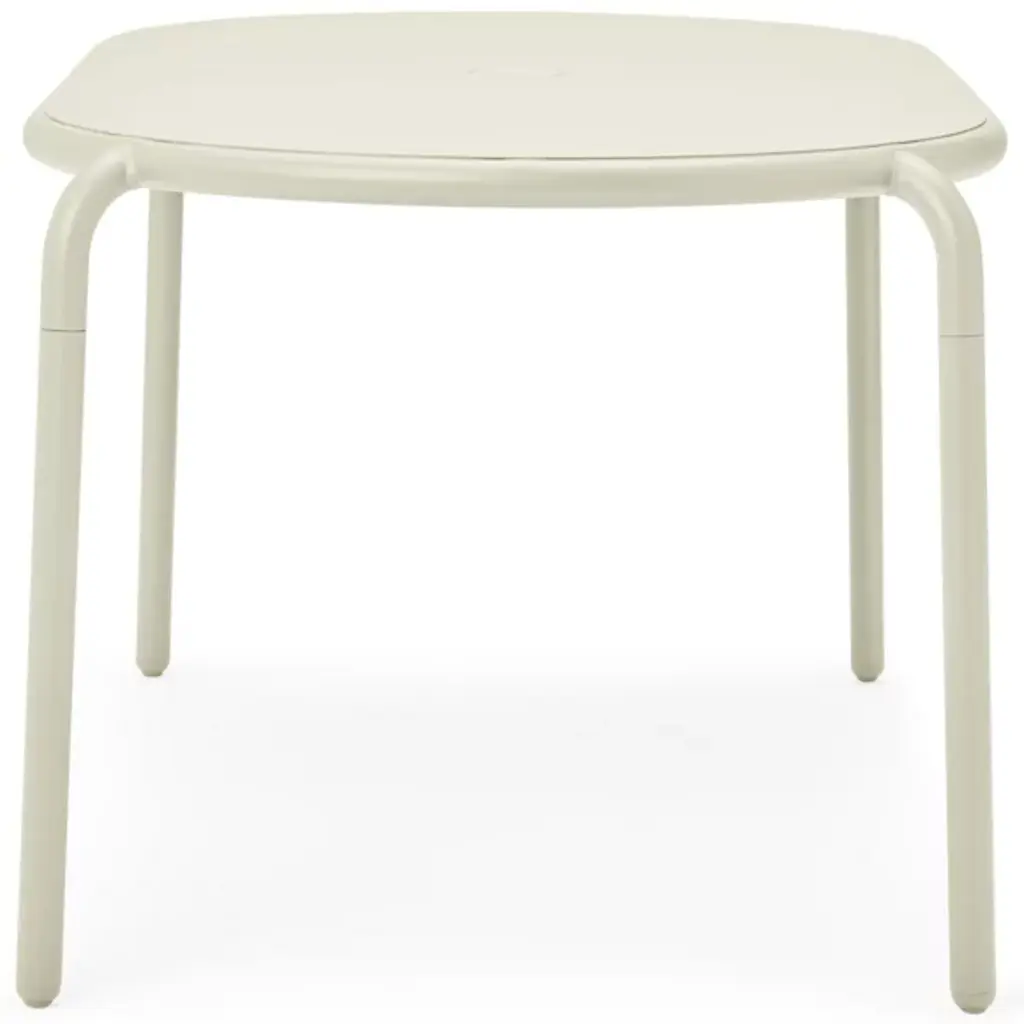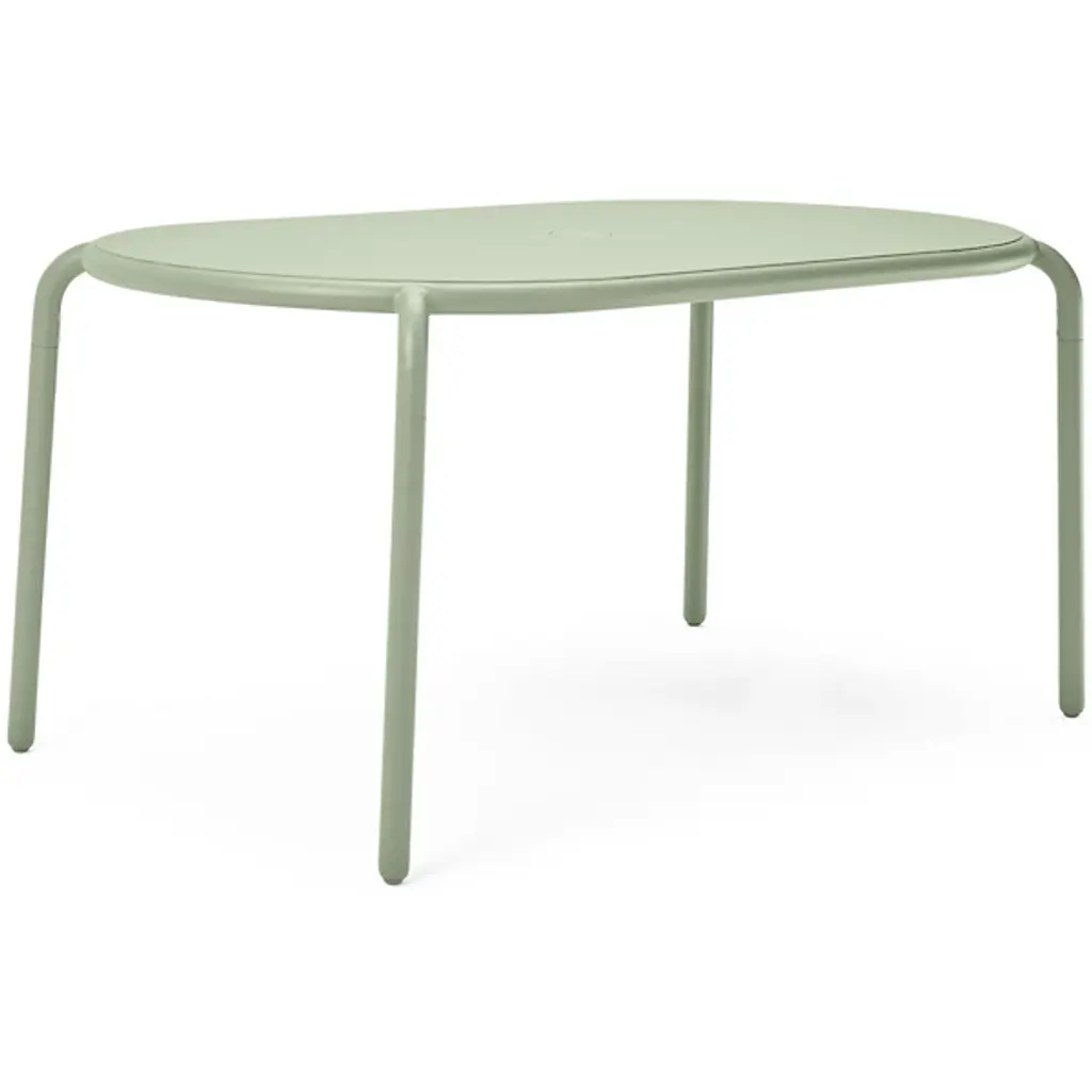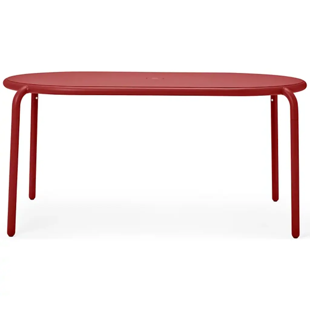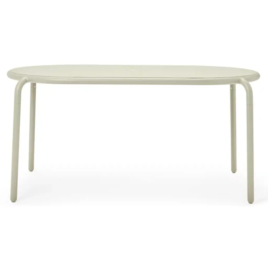 The Toni Tavolo Outdoor Dining Table by Fatboy brings a lasting and elegant character well-suited to backyards and other outdoor gathering spaces. A smooth oval design that seats six, it’s balanced on four adjustable legs and fashioned from aluminum, which lends both structural strength and an easy-to-move lightness. The tabletop is flat and matte-textured for rust resistance, featuring a central parasol opening that breaks up its solid surface to add another welcome touch of functionality to its softly-curved construction.