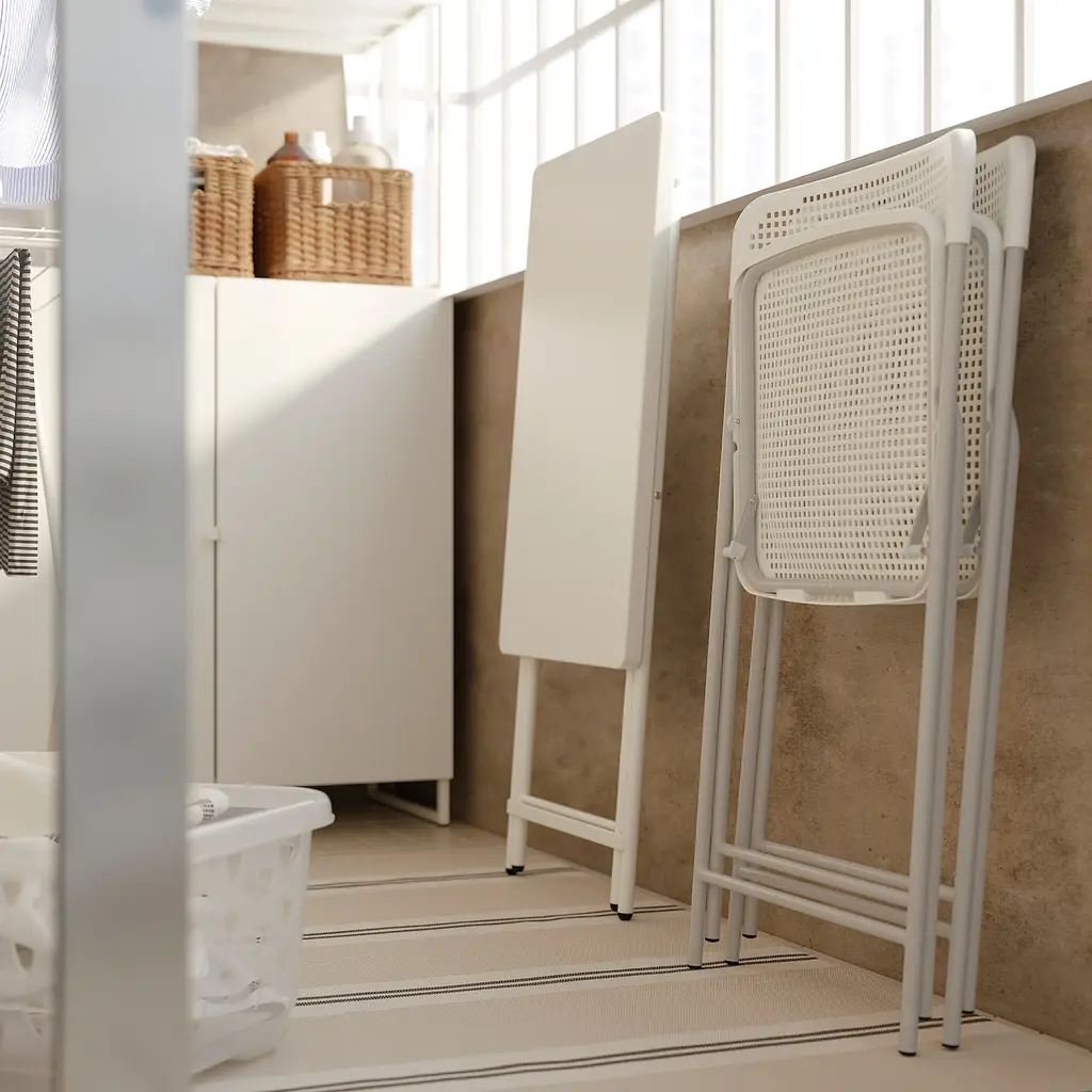 TORPARÖ Table, indoor/outdoor - white/foldable 27 1/2x16 1/2 ". The table folds flat to store it less space. The table is durable and easy to care for, as it is made of powder-coated steel. The materials in this outdoor furniture require no maintenance. Seats 2.
