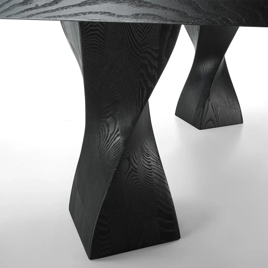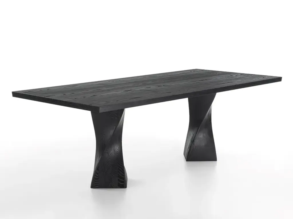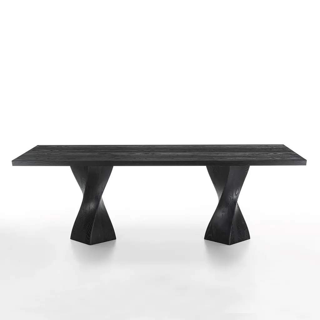 Dining Table Torsade Black with top made with blockboard veneered ash with bevelled edgesin black pigmented finiish.With 2 feet in solid ash in black pigmented finish.Also available in:L220xD100xH75cm, price: 9400,00€L240xD100xH75cm, price: 9800,00€L260xD100xH75cm, price: 10800,00€L280xD100xH75cm, price: 11400,00€L2300xD100xH75cm, price: 11900,00€.