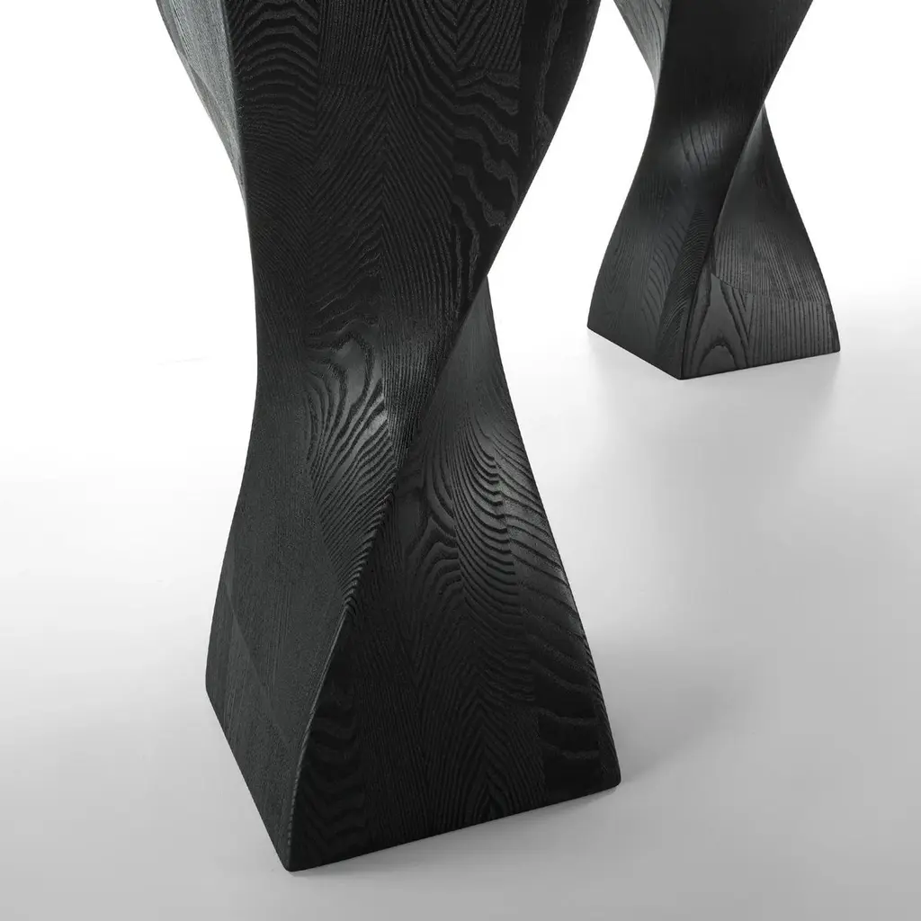 Dining Table Torsade Walnut with top made with blockboard veneered walnut with bevelled edges. With 2 feet in solid ash in black pigmented finish.Also available in:L220xD100xH75cm, price: 7900,00€L240xD100xH75cm, price: 8400,00€L260xD100xH75cm, price: 9200,00€L280xD100xH75cm, price: 10500,00€L2300xD100xH75cm, price: 9800,00€