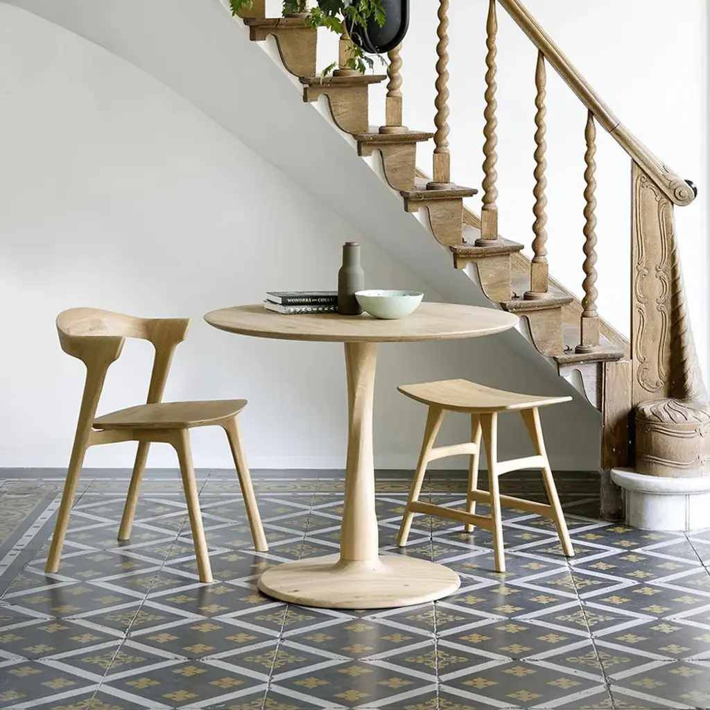 A seemingly simple dining design, the Torsion Dining Table from Ethnicraft presents quality Scandinavian craftsmanship offering strong attention to detail and visual appeal. Boasting a compact, round design ideal for smaller dining spaces or rooms, this table showcases an engraved twist in the post that runs up to the tabletop for an unexpected, but welcomed detail. Ready to meet your dining space needs, this table is ideal for a casual meal for two, or cozy dinner party with friends and family.Highlights