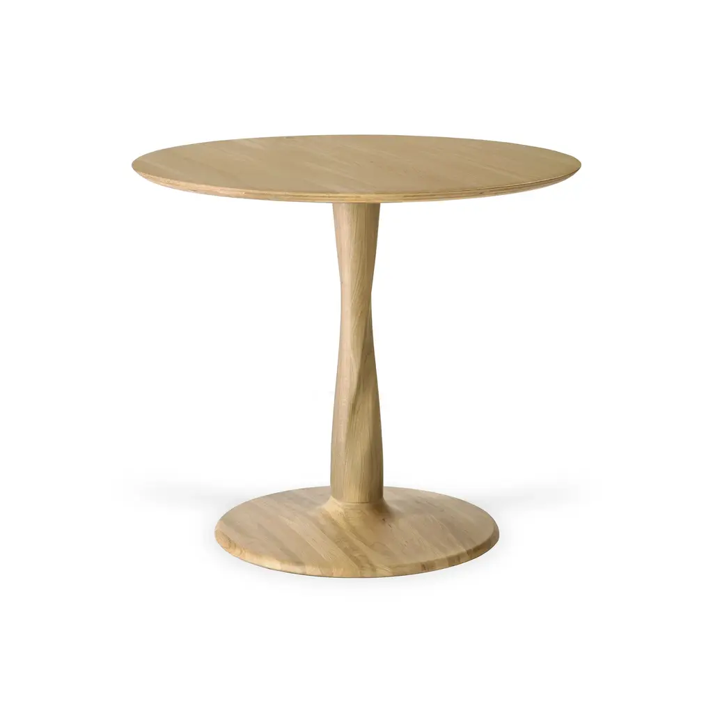 A seemingly simple dining design, the Torsion Dining Table from Ethnicraft presents quality Scandinavian craftsmanship offering strong attention to detail and visual appeal. Boasting a compact, round design ideal for smaller dining spaces or rooms, this table showcases an engraved twist in the post that runs up to the tabletop for an unexpected, but welcomed detail. Ready to meet your dining space needs, this table is ideal for a casual meal for two, or cozy dinner party with friends and family.Highlights