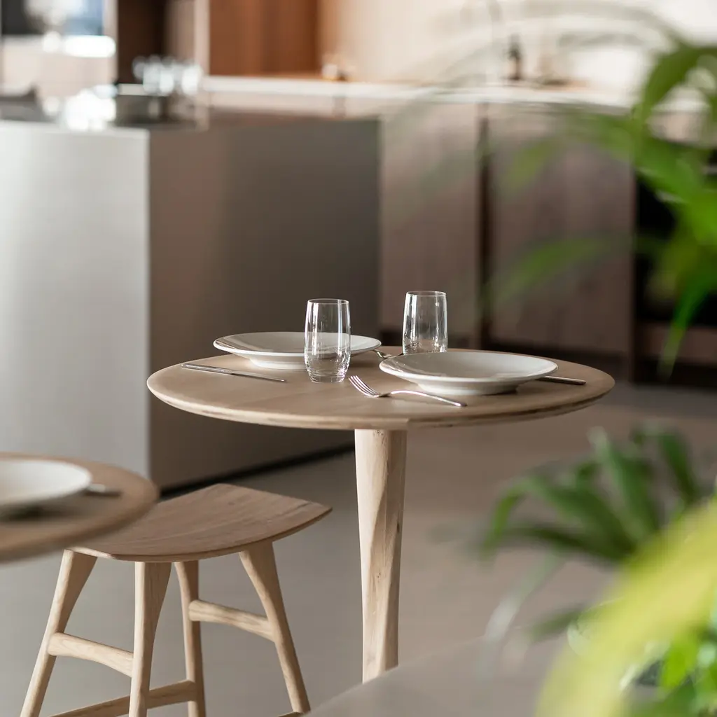 A seemingly simple dining design, the Torsion Dining Table from Ethnicraft presents quality Scandinavian craftsmanship offering strong attention to detail and visual appeal. Boasting a compact, round design ideal for smaller dining spaces or rooms, this table showcases an engraved twist in the post that runs up to the tabletop for an unexpected, but welcomed detail. Ready to meet your dining space needs, this table is ideal for a casual meal for two, or cozy dinner party with friends and family.Highlights