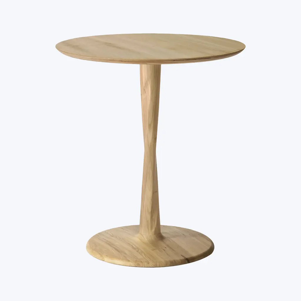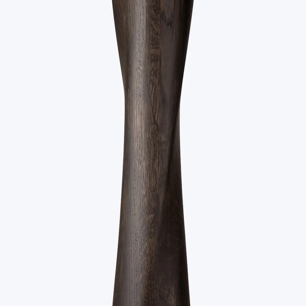 The Oak Torsion Round Dining Table is a captivating blend of intricate craftsmanship and timeless design. Offered in three sizes, it features a solid oak construction that highlights the organic beauty of natural wood. Its standout design lies in the torsaded base, a sculptural marvel that merges airy aesthetics with exceptional stability. Advanced woodworking techniques ensure the tabletop is lightweight yet durable, offering a perfect balance of functionality and elegance. This table is easy to integrate into various dining spaces, bringing warmth and character to any setting. Handcrafted in Serbia, the Torsion Dining Table reflects a mastery of craftsmanship, making it a focal point for intimate gatherings or as a statement piece in your home. Its refined form and natural oak finish seamlessly combine sophistication and practicality, elevating your dining experience.