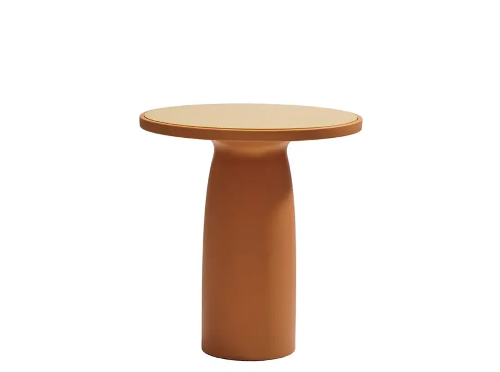Toto is a round dining table in polyethylene with a height of 75 cm and a 70 cm diameter integrated top made in durat.The Toto Tables collection is based on the concept of a pillar shaped leg in recyclable polyethylene which allows a variety of combinations with different tops. The table tops are crafted from various materials: glass, HPL, stoneware, or durat and have different dimensions. All the products are suitable for indoor and outdoor use.