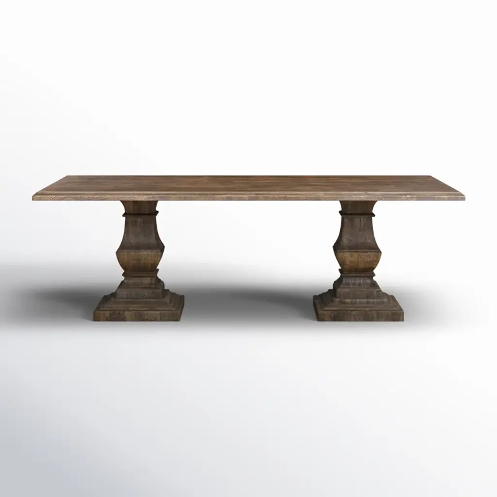 It's all about the details with the beautiful products of the Toulon collection. Each piece starts with a rich, weathered brown finish over solid mango wood, and features accents like thick multi-layered pedestals and triple beveled waterfall edged table tops, resulting in a traditional yet contemporary look. The fine details of this collection truly bring to life an elegance not easily found. This beautiful rectangle dining table with weathered mango finish pairs perfectly with any solid wood or mixed media dining room decor. The quality construction enhances the durability and beauty of the table, while the presence of natural wood knots and markings bring out the distinct characteristics of this wood, making no two pieces the same.