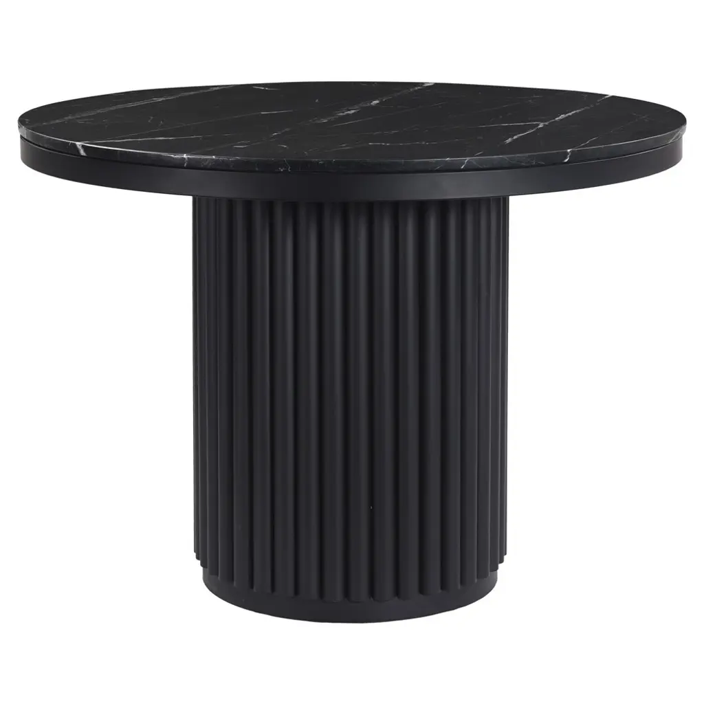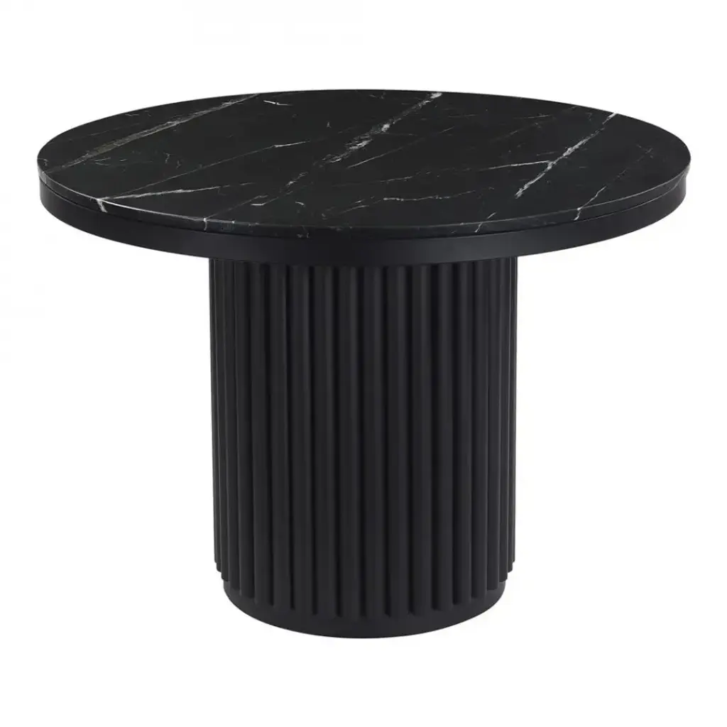 Inspired by Roman architecture, the Tower dining table features a black-finished pillar base holding up a beautiful black marble top. This classic yet modern design, which seats two to four people, is a welcome addition to any contemporary home.
