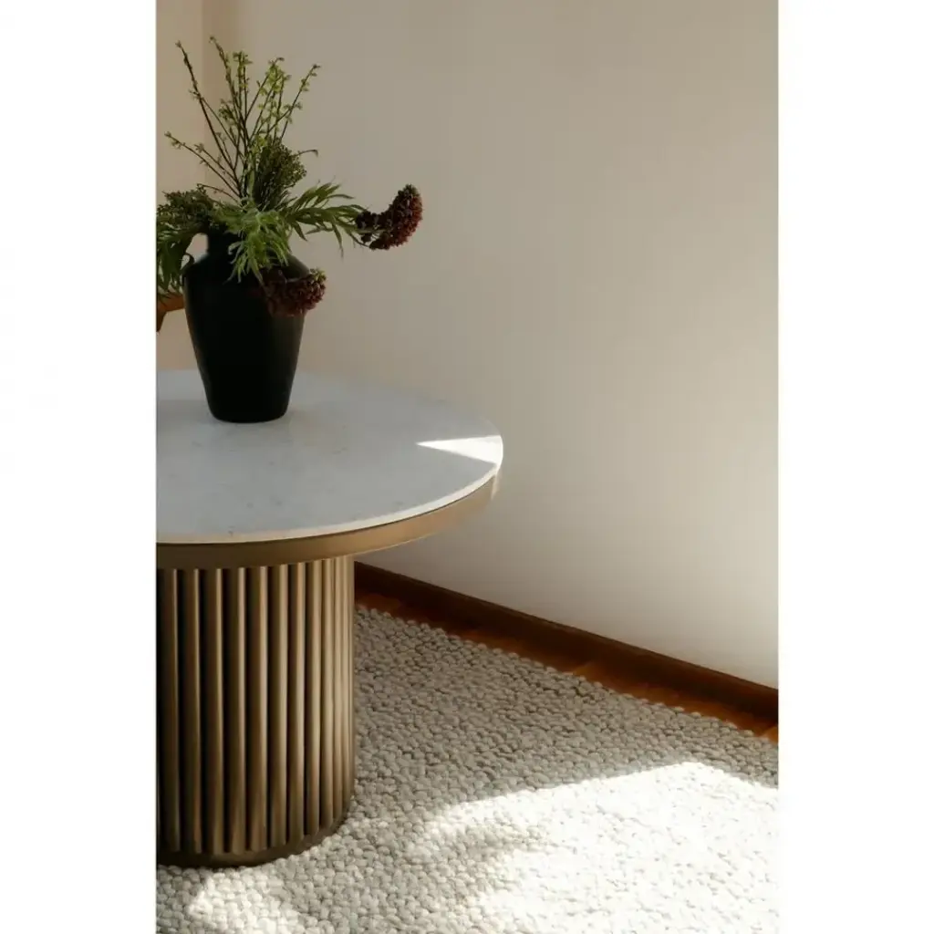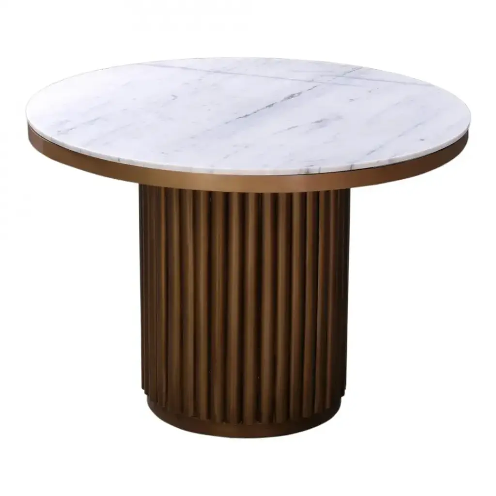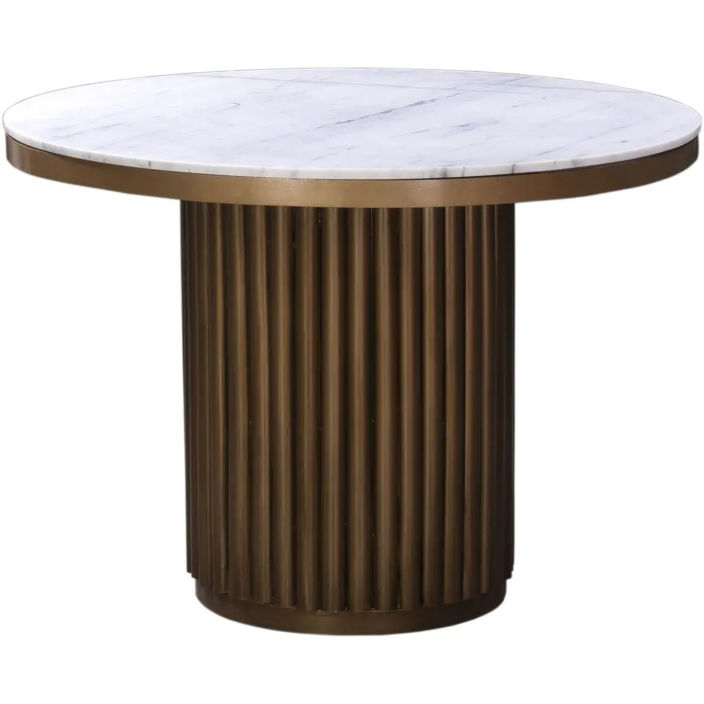 Inspired by Roman architecture, the Tower dining table features a brass-finished pillar base holding up a beautiful white marble top. This classic yet modern design, which seats two to four people, is a welcome addition to any contemporary home.