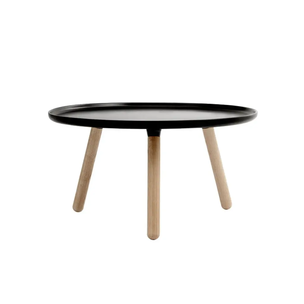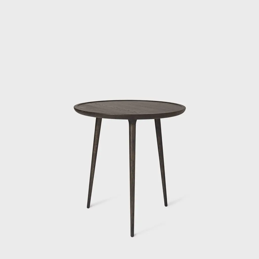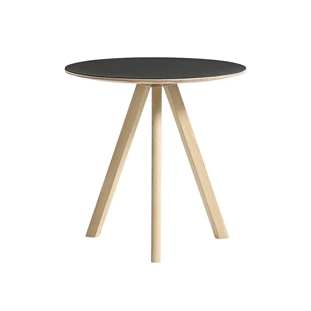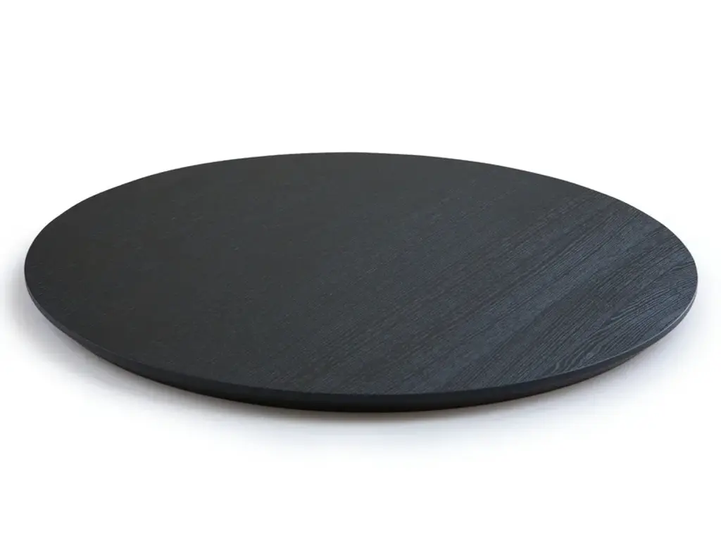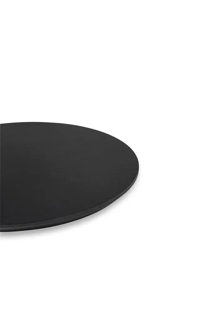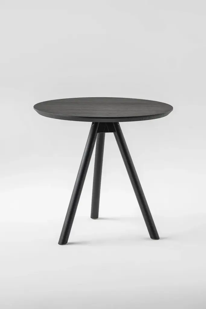 Dining table with solid wood base and round wooden tabletop from the AKY collection, designed by Emilio Nanni.Model: 3 legsBase finishing Wood: AshColour: Ash black aniline 05Table top size: Ø 80 cmTop finishing: BeechColour: Beechwood wenge 26
