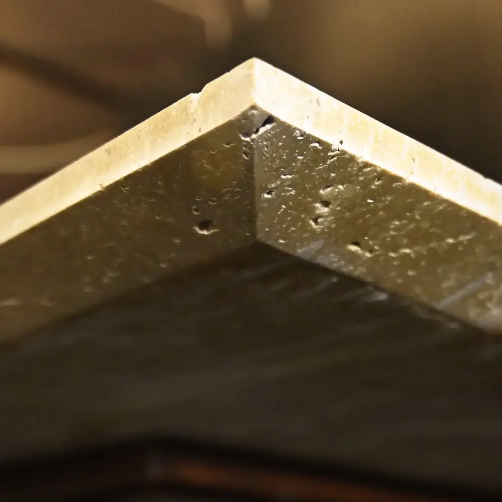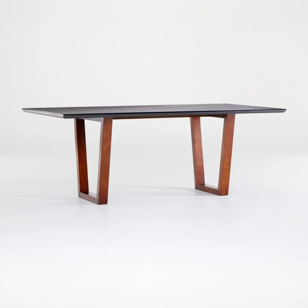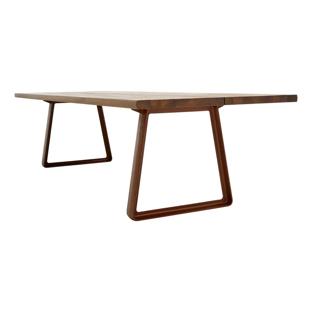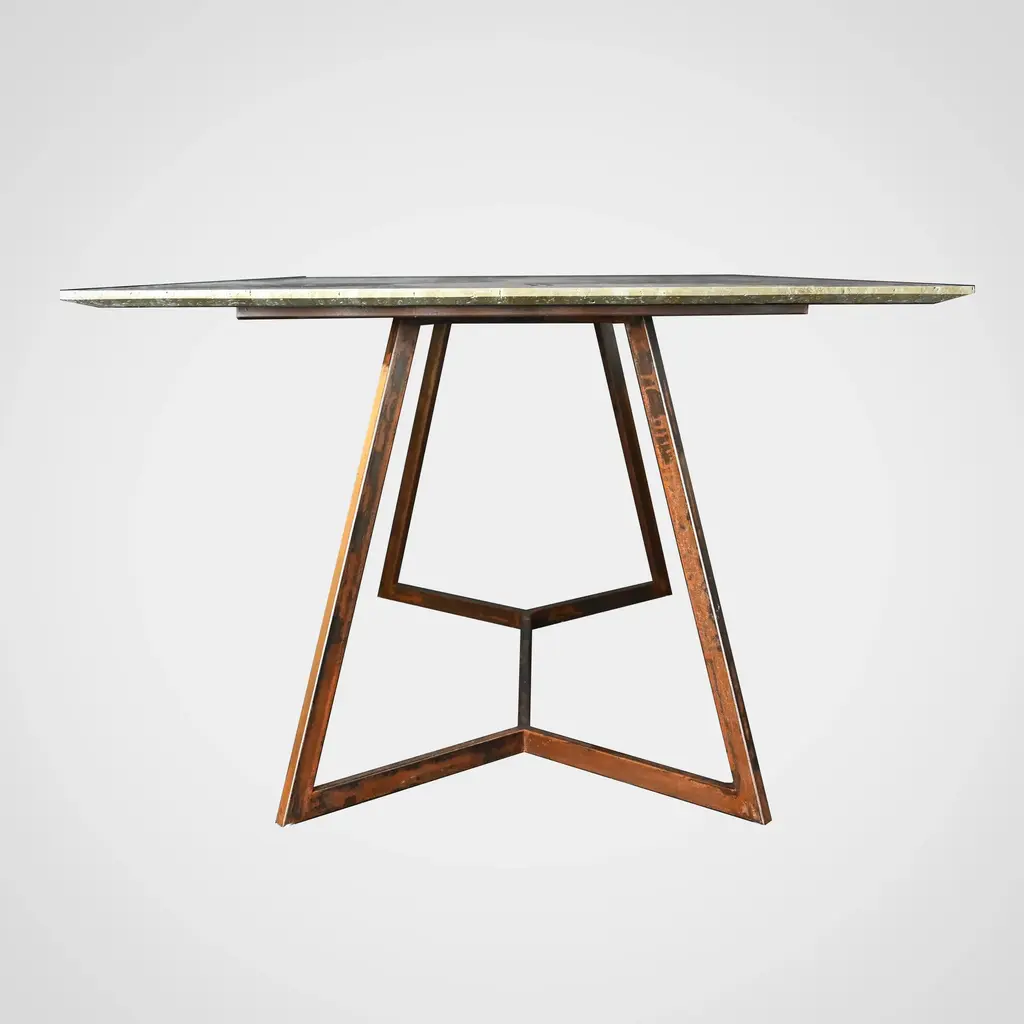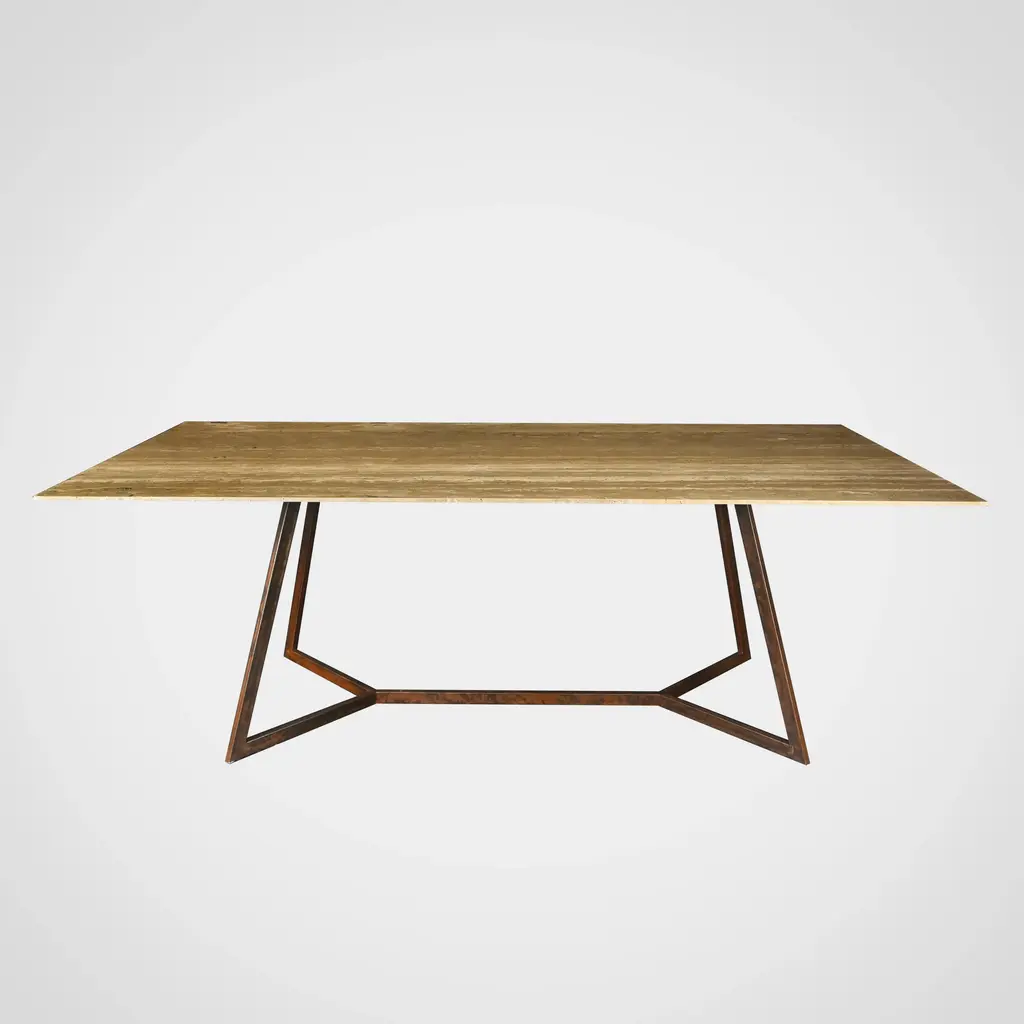 Refined beauty in its element, the Trapeze Dining Table is made of resined travertine , The steel legs are finished with a Corten effect and are structurally designed to highlight and outline the beauty of the travertine top. Delicate, minimal and elegant, the Trapeze Dining Table is a simple yet beautiful piece of furniture able to match in synergy with any type of interior space. Labeled by Maker