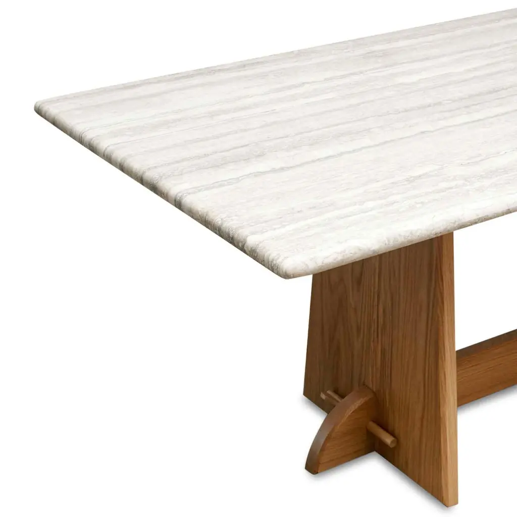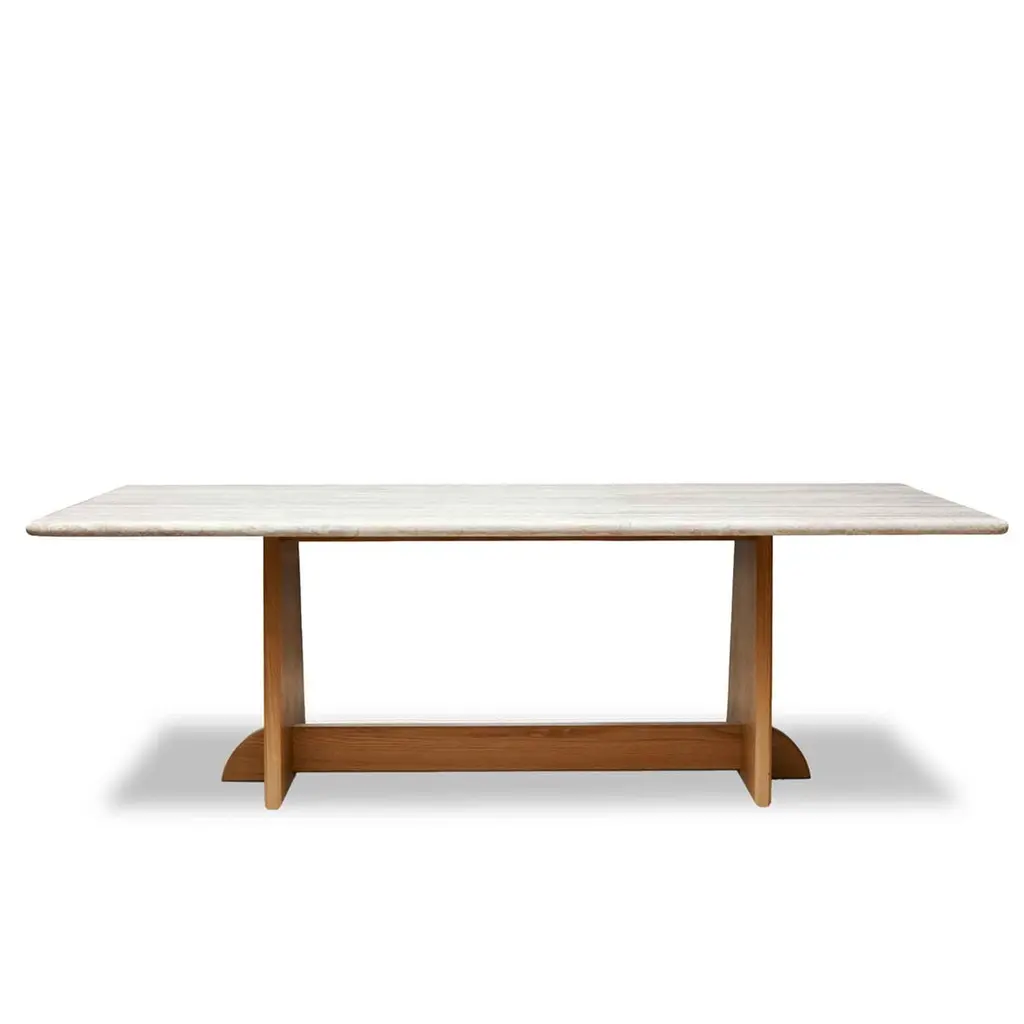 The Ojai dining table features a trestle base made of solid wood and the option of a stone or solid wood top. Available in three standard sizes. The Lawson-Fenning collection is designed and handmade in Los Angeles, California. Reach out to discover what options are currently in stock.