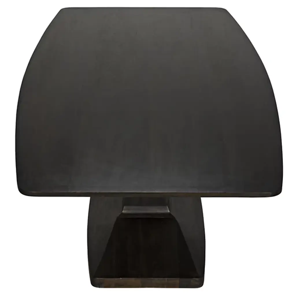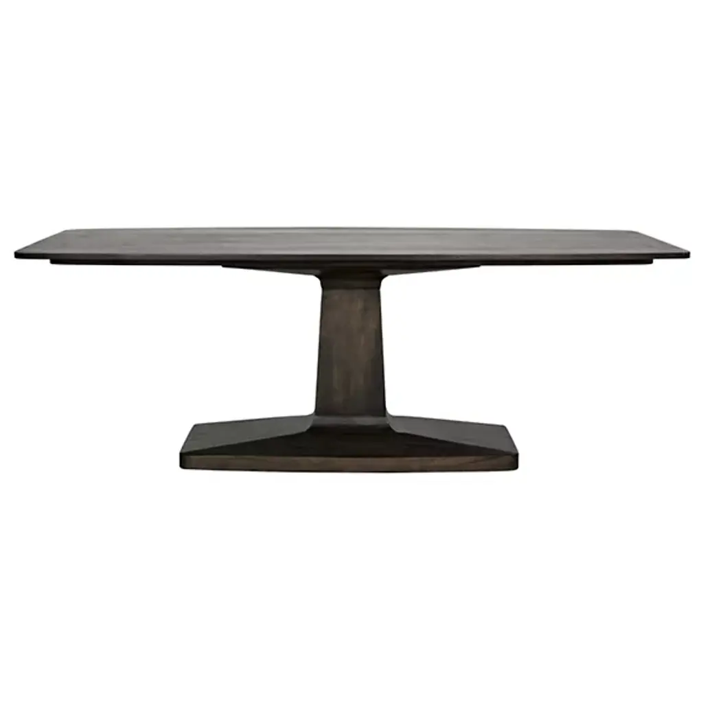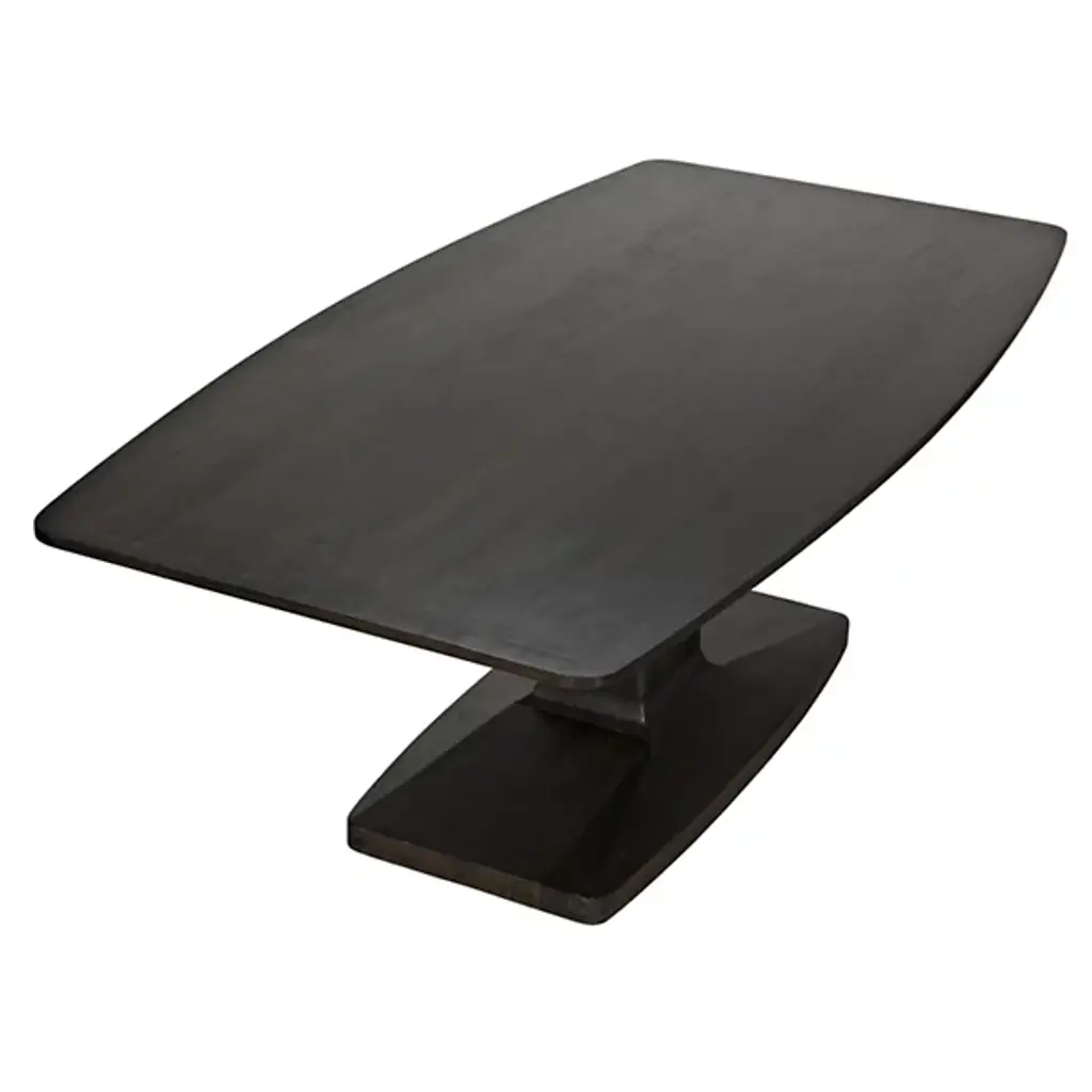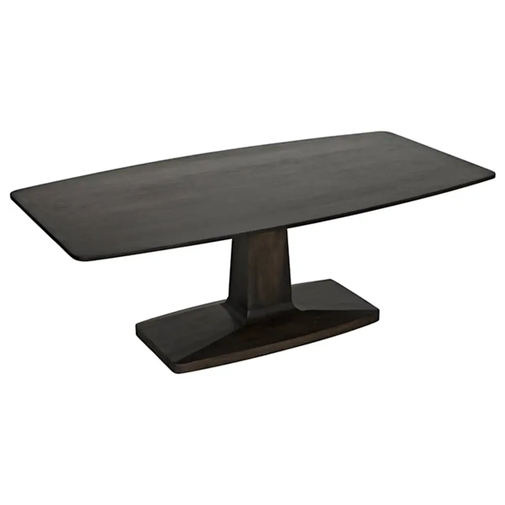 Elegant, abstract, and arresting, the Travis Dining Table from Noir enhances spaces with inspired angularity. A clever and clean-surfaced construction in natural woodgrain, it starts with a rectangular base that bevels upward, adding a touch of complexity, extending a contrasting column to a broader tabletop that flares out as it rises. The stepped lower construction of the table adds strength, while the rounded corners of each tabletop provide a visual and physical softening, transforming its environment with retro-modern charm.