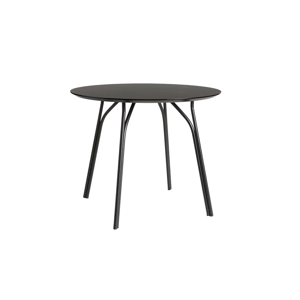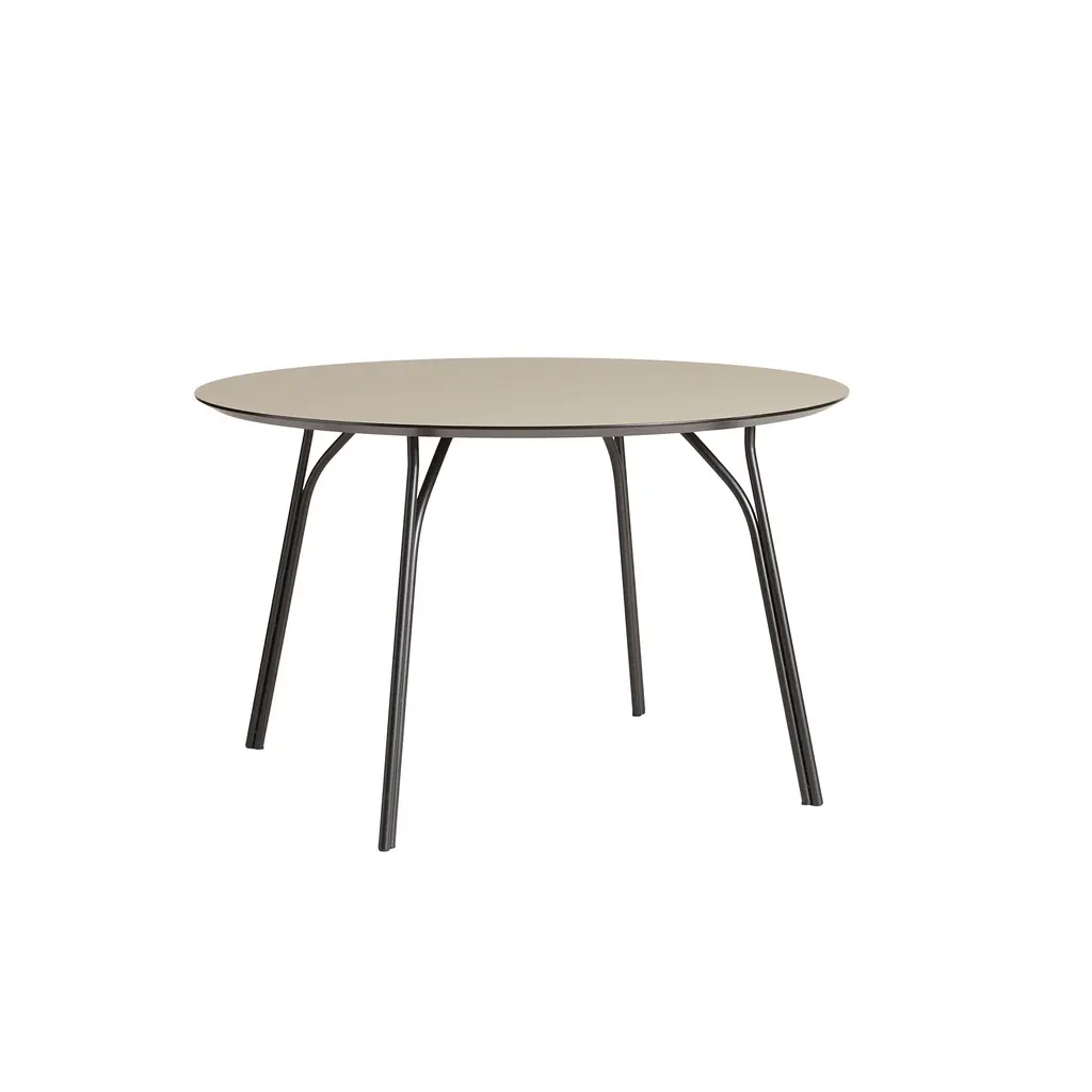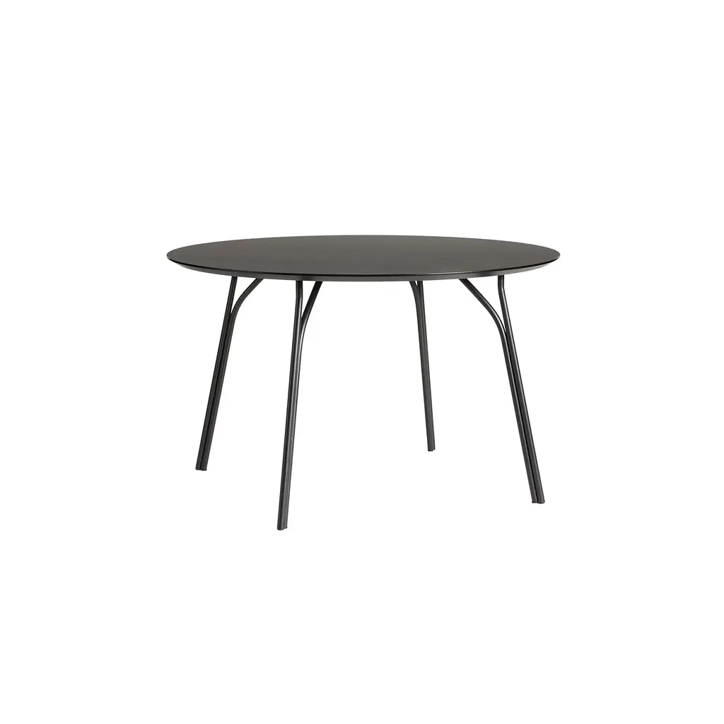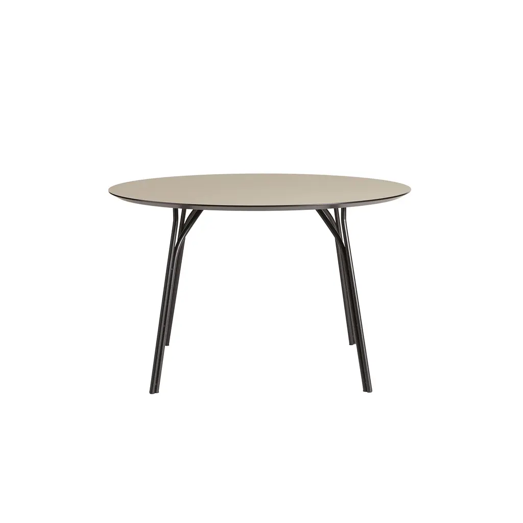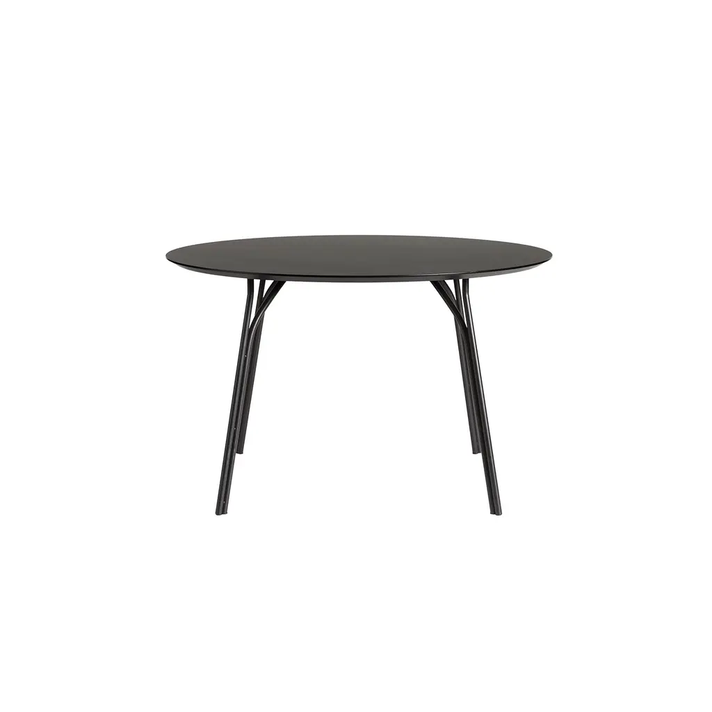 Translating the beauty of a forest into a minimalist form, the Woud Tree Dining Table refines the heart of the home: the place where family and friends gather and share meals. Inspired by a walk in a woodland, French-American designer Elisabeth Hertzfeld created the Tree table with branch-like legs that provide support to the tabletop, a symbolic canopy. The tubular legs add an organic accent to the design as they split into two branches each. Large and spacious, the top has a rounded shape to encourage lively conversations and close connections at the dining table. Made with a combination of metal legs and a Fenix nano laminate top.