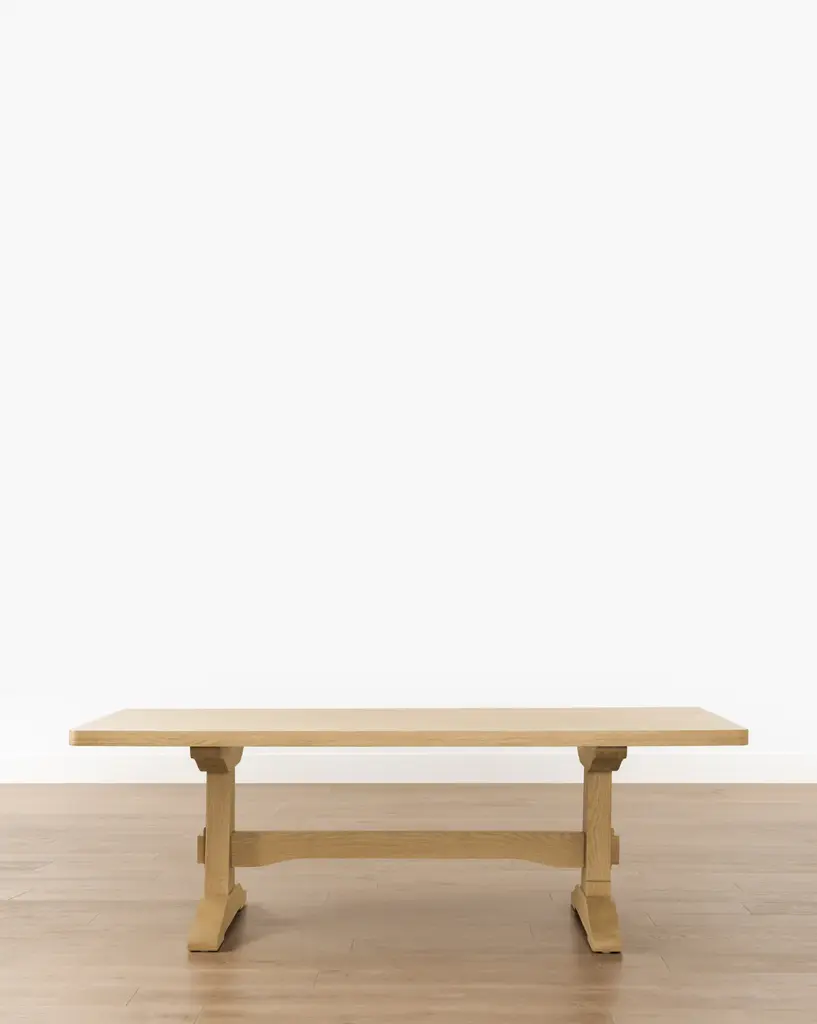 Trestle Dining Table Walnut Handcrafted in the USA, the Trestle Dining Table adds an elevated touch to any dining experience. With woodworking details that are instantly iconic, this piece will instantly create the perfect gathering space. Made with integrity, quality, and timeless design in mind, Jenni Kayne Furniture is built to last forever. Complete this look with the Dining Bench or our Leather Dining Chairs. For help styling this piece in your space, contact [email protected] for a complimentary consultation. For furniture purchases, please refer to our furniture inspection policy here. Dynamic and expertly-designed dining table made from solid Walnut wood.CA Residents: Prop 65 Information