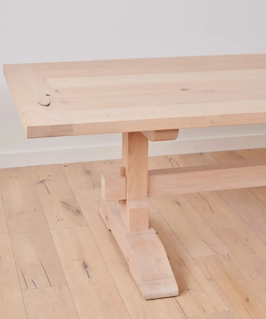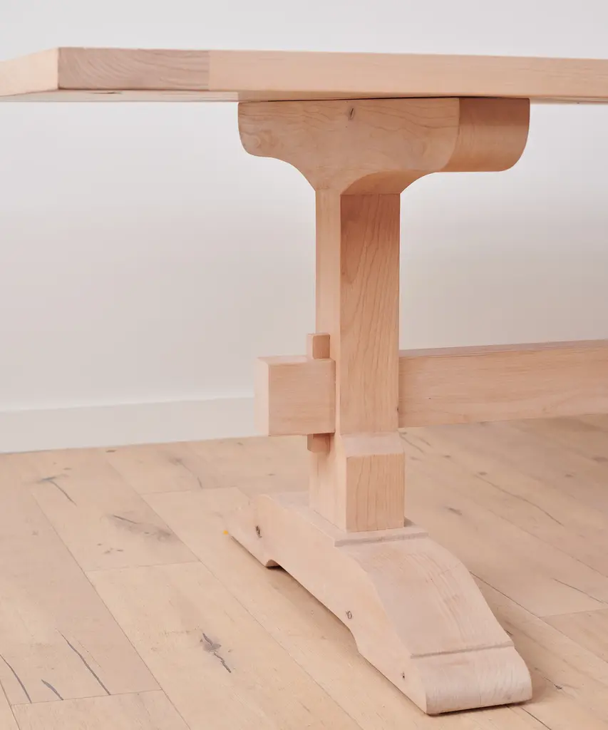Trestle Dining Table Knotty Alder Handcrafted in the USA, the Trestle Dining Table adds an elevated touch to any dining experience. With woodworking details that are instantly iconic, this piece will instantly create the perfect gathering space. Made with integrity, quality, and timeless design in mind, Jenni Kayne Furniture is built to last forever. Complete this look with the Dining Bench or our Leather Dining Chairs. For help styling this piece in your space, contact [email protected] for a complimentary consultation. For furniture purchases, please refer to our furniture inspection policy here. Dynamic and expertly-designed dining table made from solid Knotty Alder wood.CA Residents: Prop 65 Information