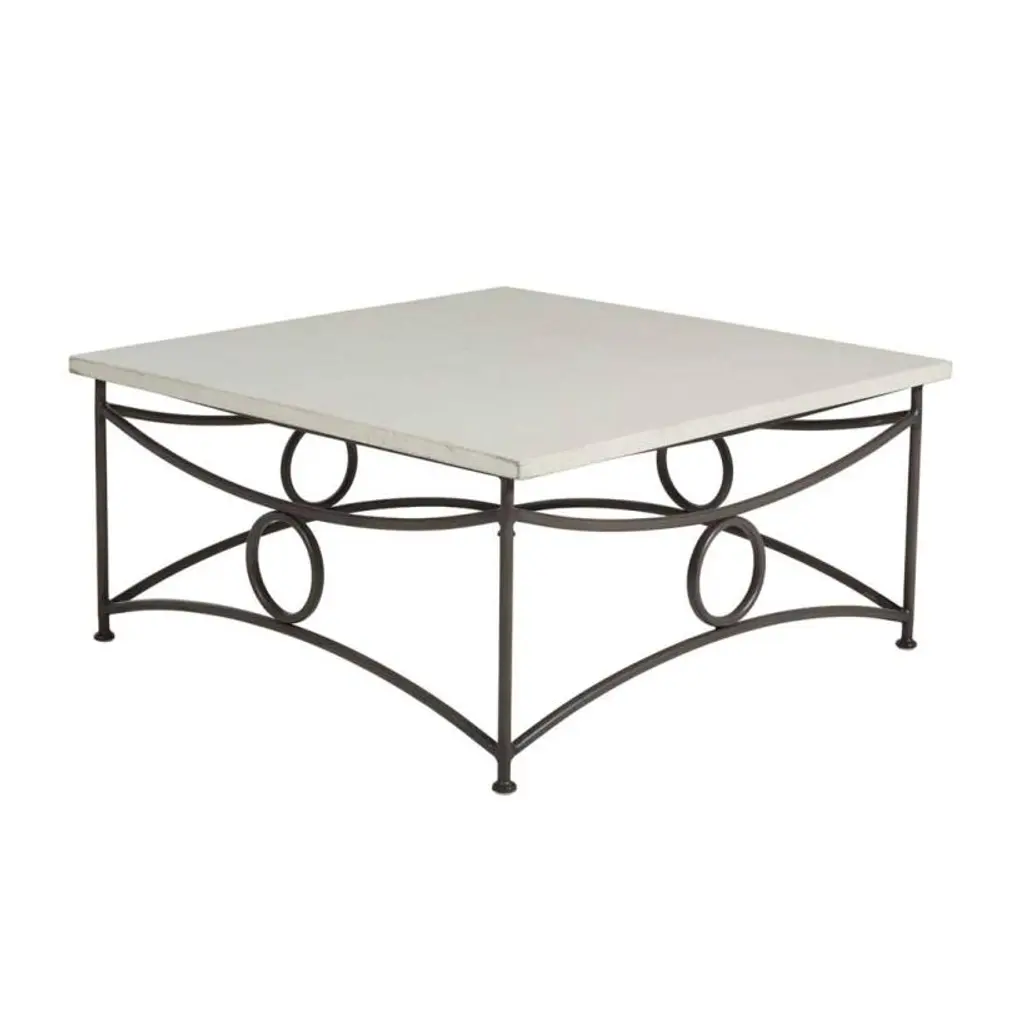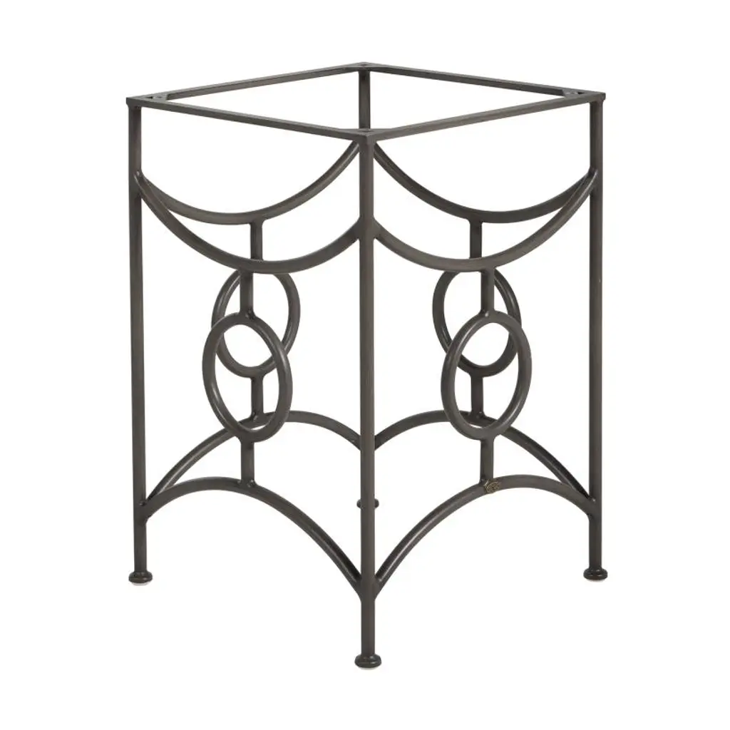 The Trestle Iron Dining Table Base is a unique table base built for durability and compelling design. Crafted from tubular iron that gracefully drapes under the tabletop in an abstracted push and pull design, this piece will make a statement in any outdoor setting. Use with Superstone top #1811+finish.