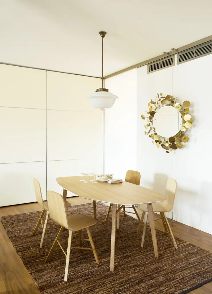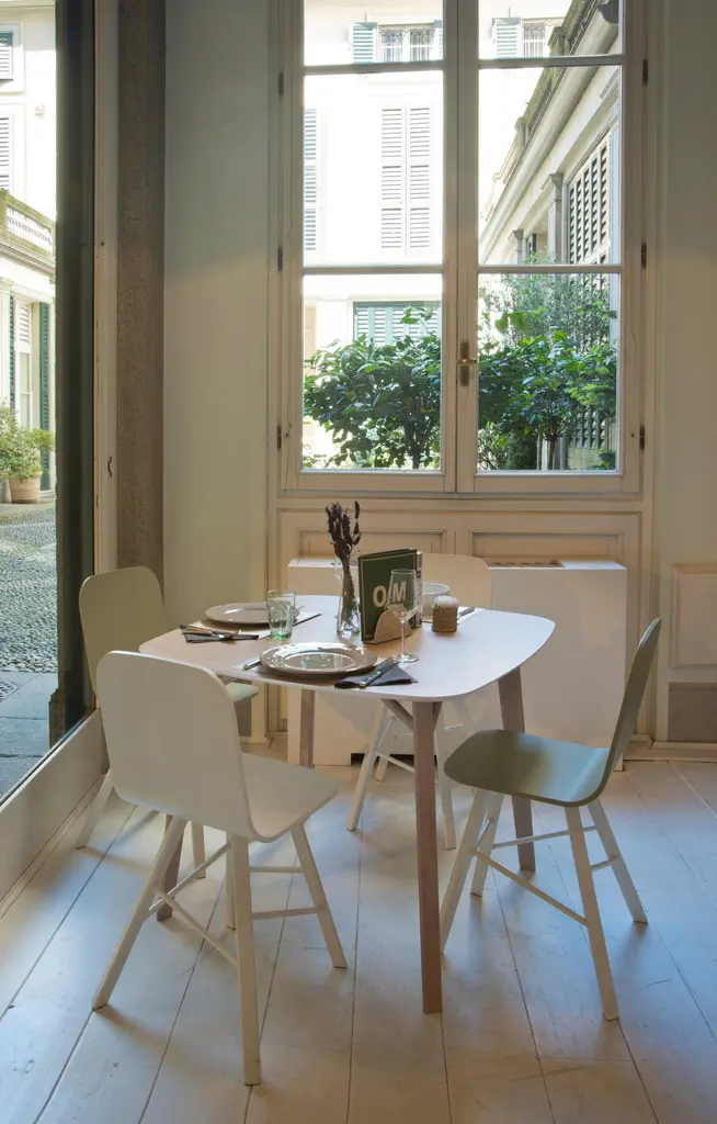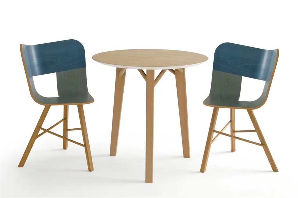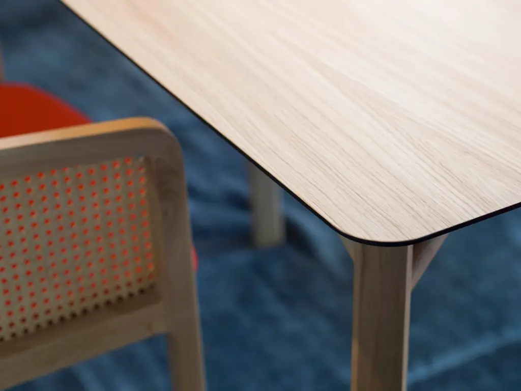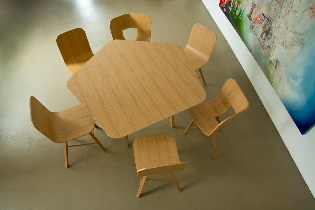 Tria oak tables are characterized by the solid wood legs that take up a triangular section like of the homonymous Tria chairs, evoking tree branches, then assembled on a large variety of table tops, with classical round and rectangular shapes and unexpected ones (pentagonal, octagonal), all with sweet rounded corners and chamfered edges.The listed one in natural oak wood, has a particular irregular shape with 8 sides, evoking an informal conviviality. You can also choose among different sizes and shapes, or ask for a special custom table to be fit to your dining room, veranda, kitchen or home office.Tria table in its neatness can host, different Colé seating like Vienna chair, bokken chair, tria and simple chair as suggested in the pictures.Legs are made of solid oak natural or stained Canaletto walnut, or lacquered in white or black. Table top is veneer in natural oak, or stained Canaletto walnut, or lacquered in black or white with a special scratch-proof painting;Upon request shape and finishing customizations. Only for q.ties for office use laminated white or anthracite tops.