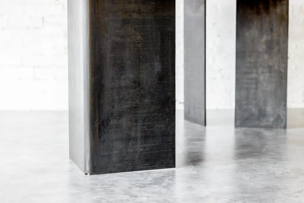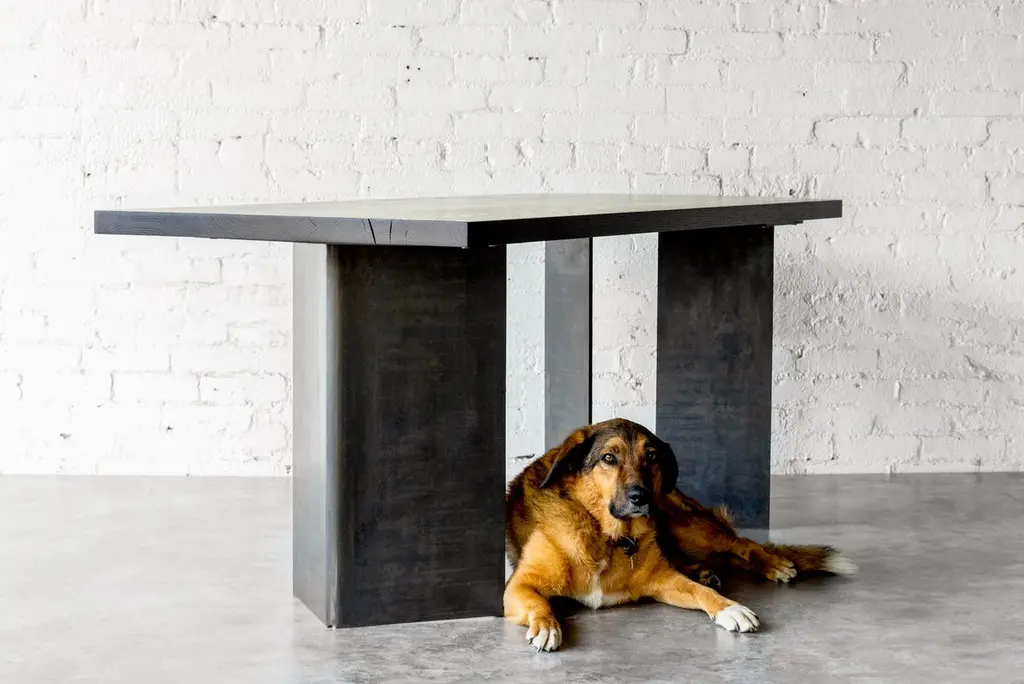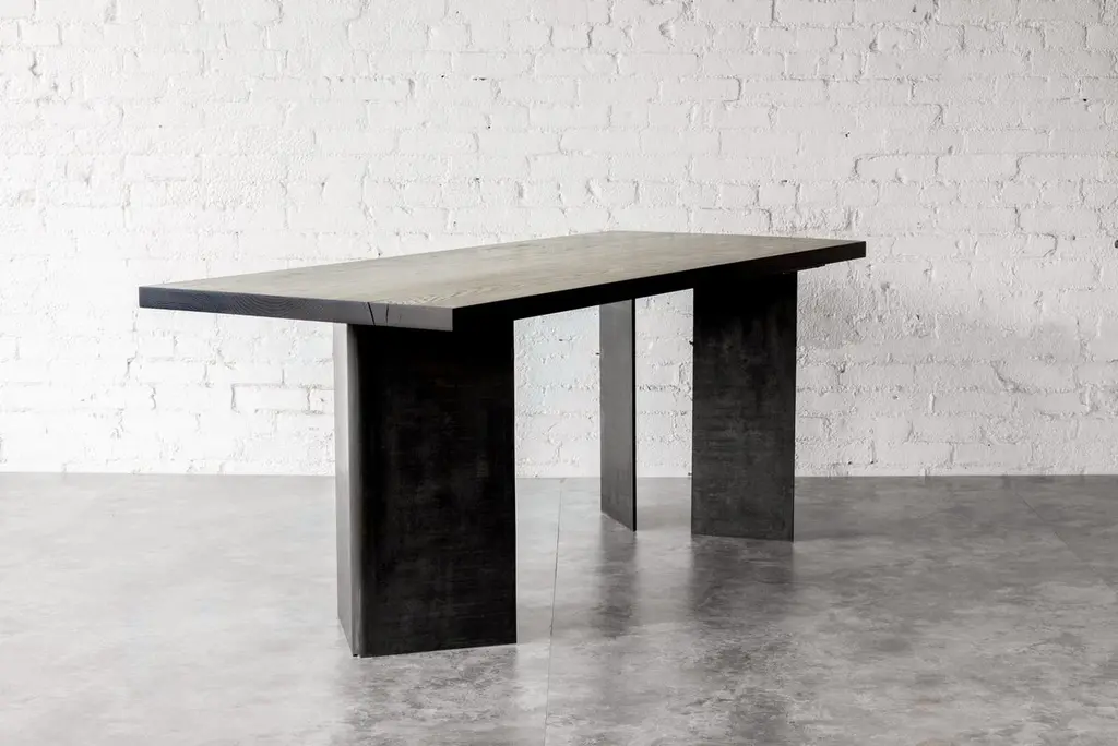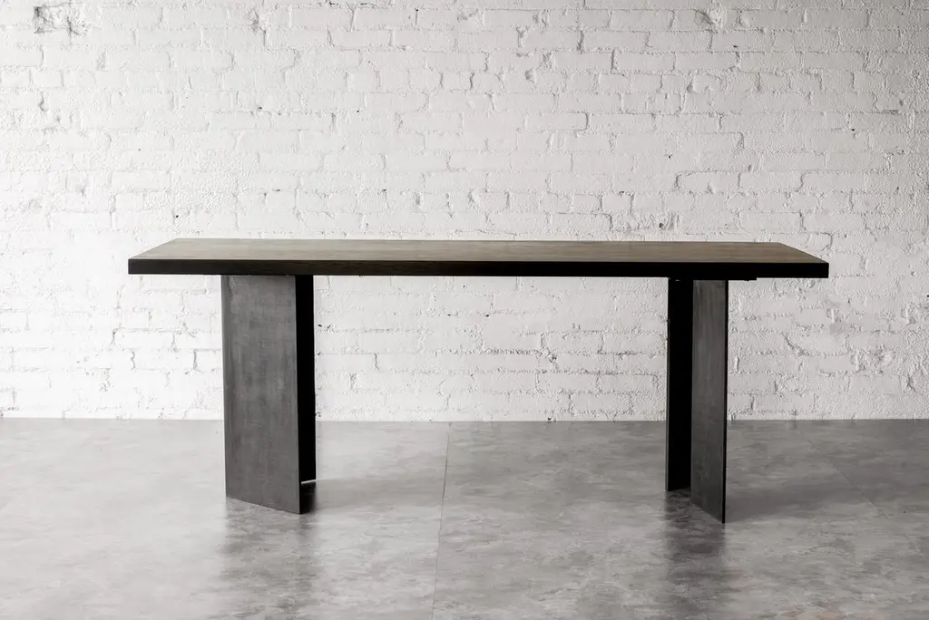 The Tribal Table uses large scale hot-rolled steel, the concept, albeit not literal, is for the front of the table to represent the bow of a ship, and the back legs the rudder. These 3/8” thick hot-rolled steel legs are not symmetrical but rather slightly offset to deliver tension between the fore and aft ends. Designer Kirk Van Ludwig chooses metal plate that has natural patina during the rolling process, showing hints of mill scale and deep colour revealing depth and story, inspired by massive ocean freightliners.The Tribal tabletop in torched and fumed oak uses ancient Japanese shou-sugi-ban technique with a proprietary finish developed at Autonomous Furniture for a lifelong finish.The Tribal table is equally suitable as a dramatic dining table or elevated home office desk. Modern blackened wood and raw steel table in Blackened Oak. We offer custom tailoring on this product, please contact us.Designed by Kirk Van Ludwig, award-winning Designer of the Year finalist for Western Living magazine. A modern furniture aficionado.72" L x 28" D x 30" H. Tailored size and materials available.