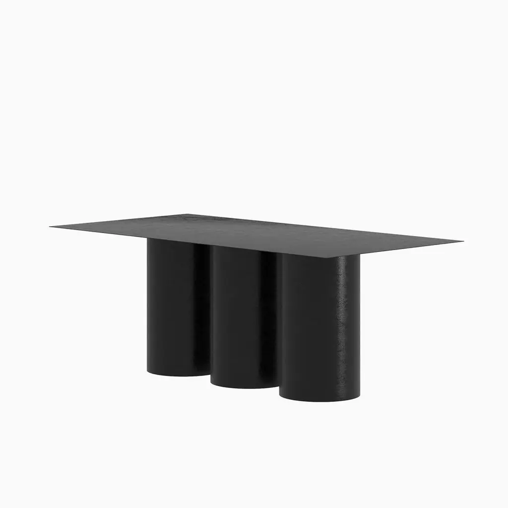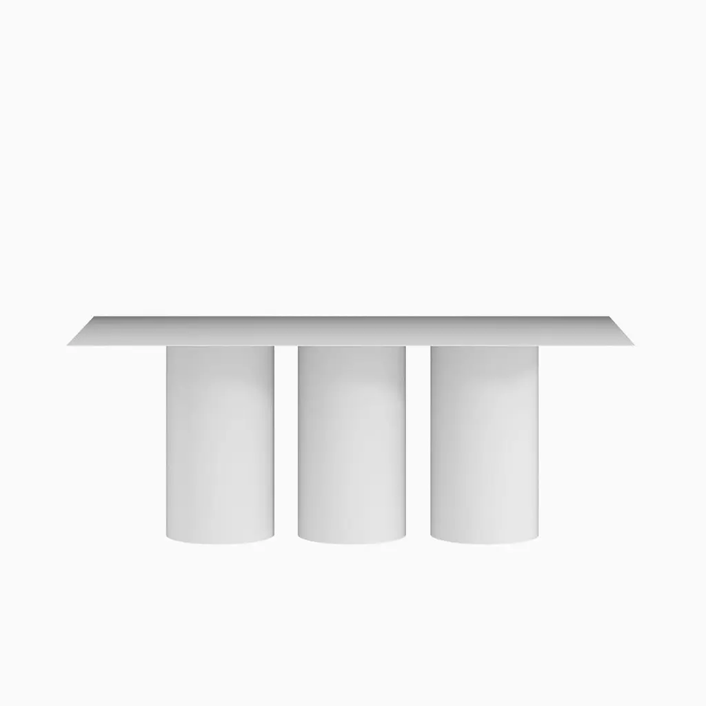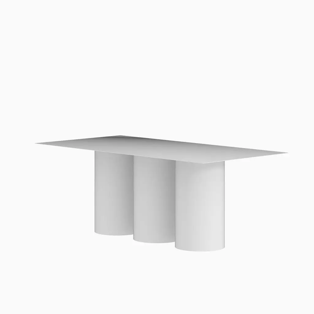 The Tripod Dining Table is a monolithic piece conceptualized as a dining table suitable for both, indoor and outdoor. Crafted by hand in galvanized aluminum and coated with a matte electrostatic finish it's size can be customized.The Tripod Dining Table seats 8 humans.