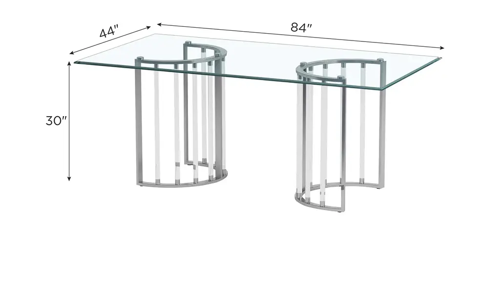 Trisha Glass Dining Table is sure to take your dining area to the next level. Set atop two semi -circle base pieces, the steel and acrylic features will add a polish you're sure to appreciate.