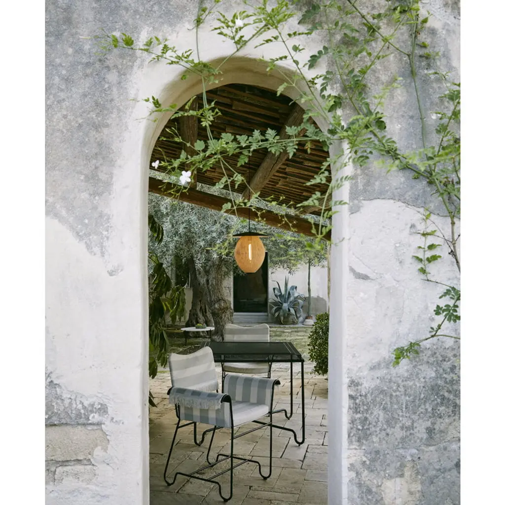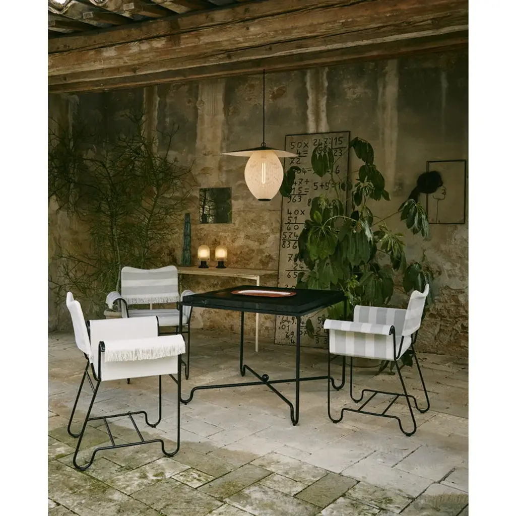 GUBI’s Tropique outdoor table exudes an air of glamor and luxury, particularly that of times past. Designed by Mathieu Matégot in 1951, the patio table comprises a slender, playfully curved metal frame and a perforated table top that allows sunlight to travel through, creating lovely patterns in its surroundings. The Tropique outdoor collection was designed in the 1950s and relaunched by GUBI in 2022 as part of the GUBI goes al fresco range. Although Tropique was out of production for several decades, it remains as one of the few collections that most shaped Matégot’s early career with its decadent esthetic inspired by life in mid-20th century Côte d’Azur – the furniture series makes one think of luxury hotels, champagne towers and indescribably beautiful views of the Mediterranean Sea.