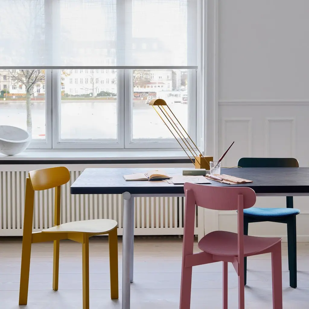 Clear, no-nonsense lines and a sturdy frame. Faye Toogood has an eye for removing clutter, and her sculpted designs celebrate the rural past even as they partake of the urban contemporary and look towards the future. You can see this trademark fusion of traditional and contemporary in the way the sheer lines of the table top seem to float above the subtly rounded black steel or aluminum frames. The TUBBY Tube dining table, builds on the motifs of the same designer's iconic SPADE chair, with tubular legs that evoke the down-to-earth strength and practicality of garden implements. A distinctive and enduring artefact that would suit your dining room, or your meeting room.
