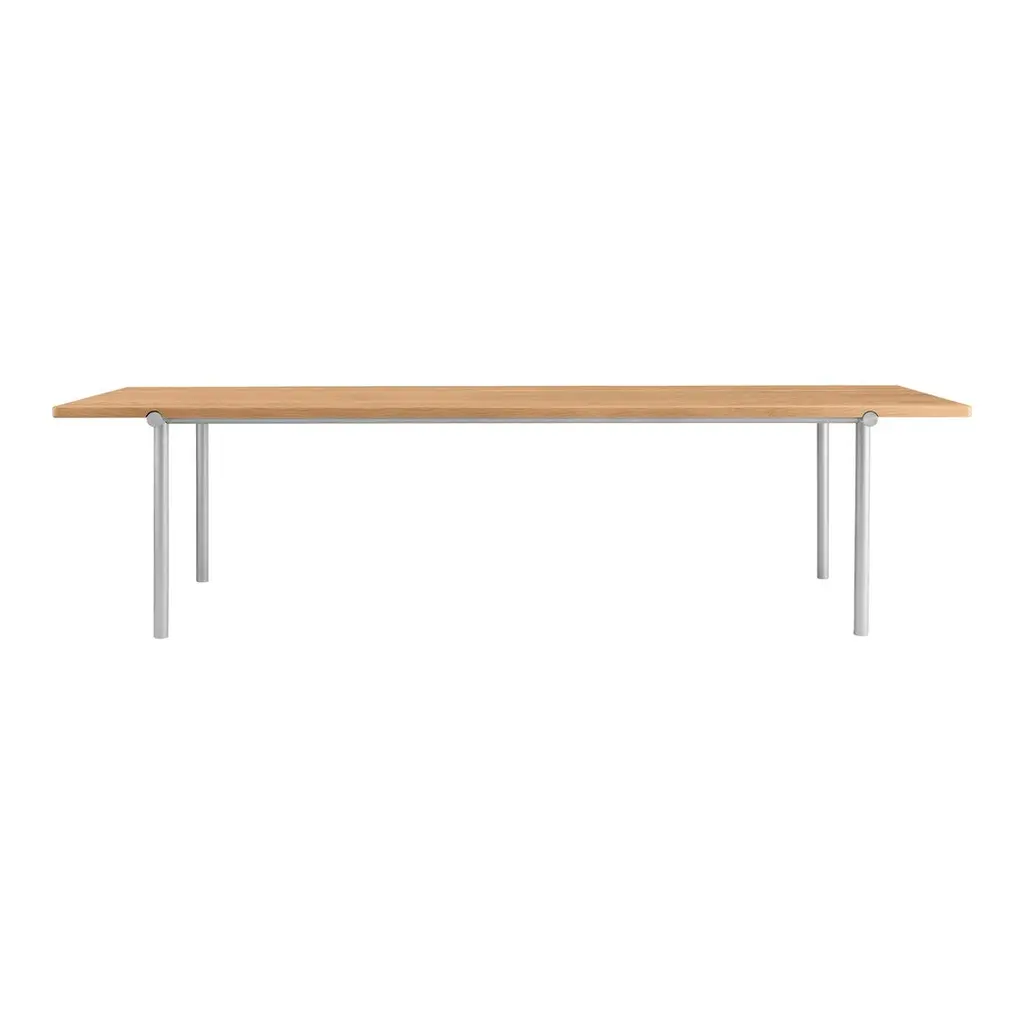 Clear, no-nonsense lines and a sturdy frame. Faye Toogood has an eye for removing clutter, and her sculpted designs celebrate the rural past even as they partake of the urban contemporary and look towards the future. You can see this trademark fusion of traditional and contemporary in the way the sheer lines of the table top seem to float above the subtly rounded black steel or aluminum frames. The TUBBY Tube dining table, builds on the motifs of the same designer's iconic SPADE chair, with tubular legs that evoke the down-to-earth strength and practicality of garden implements. A distinctive and enduring artefact that would suit your dining room, or your meeting room.